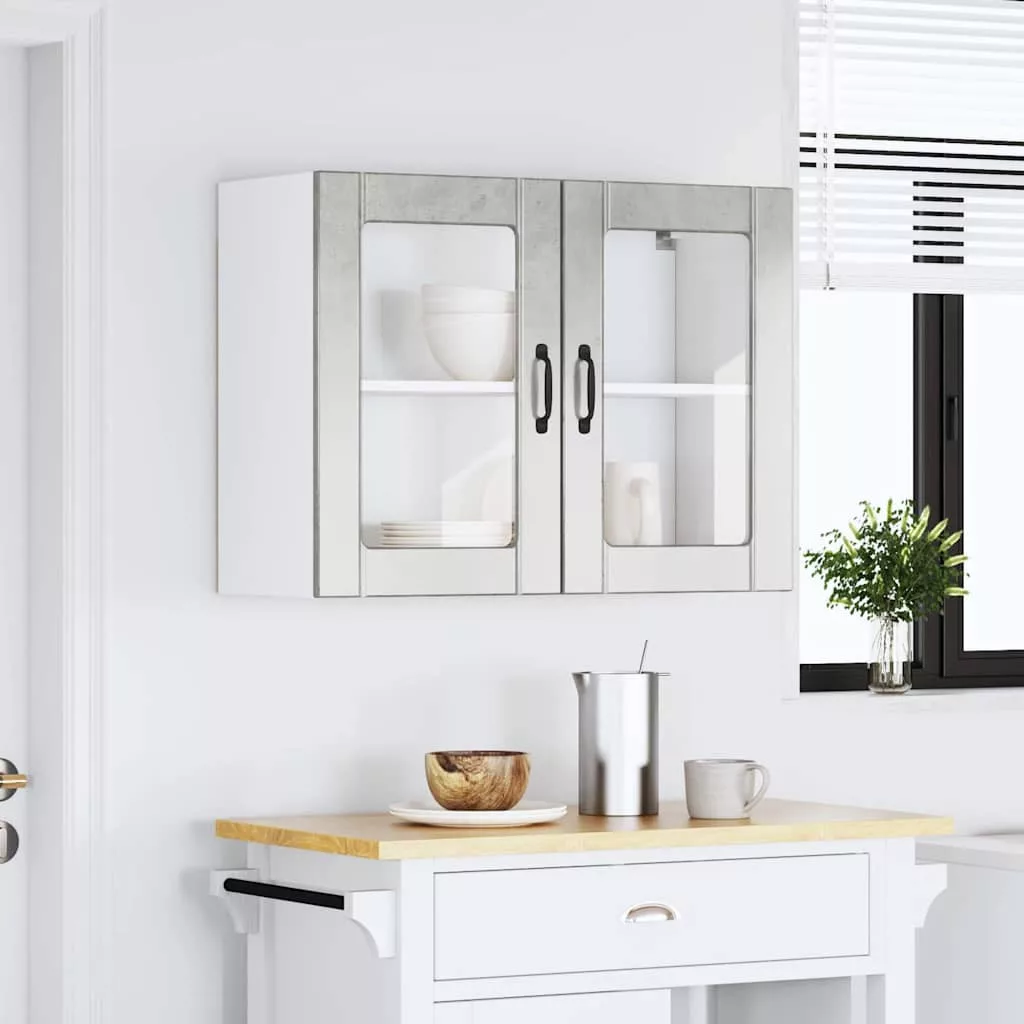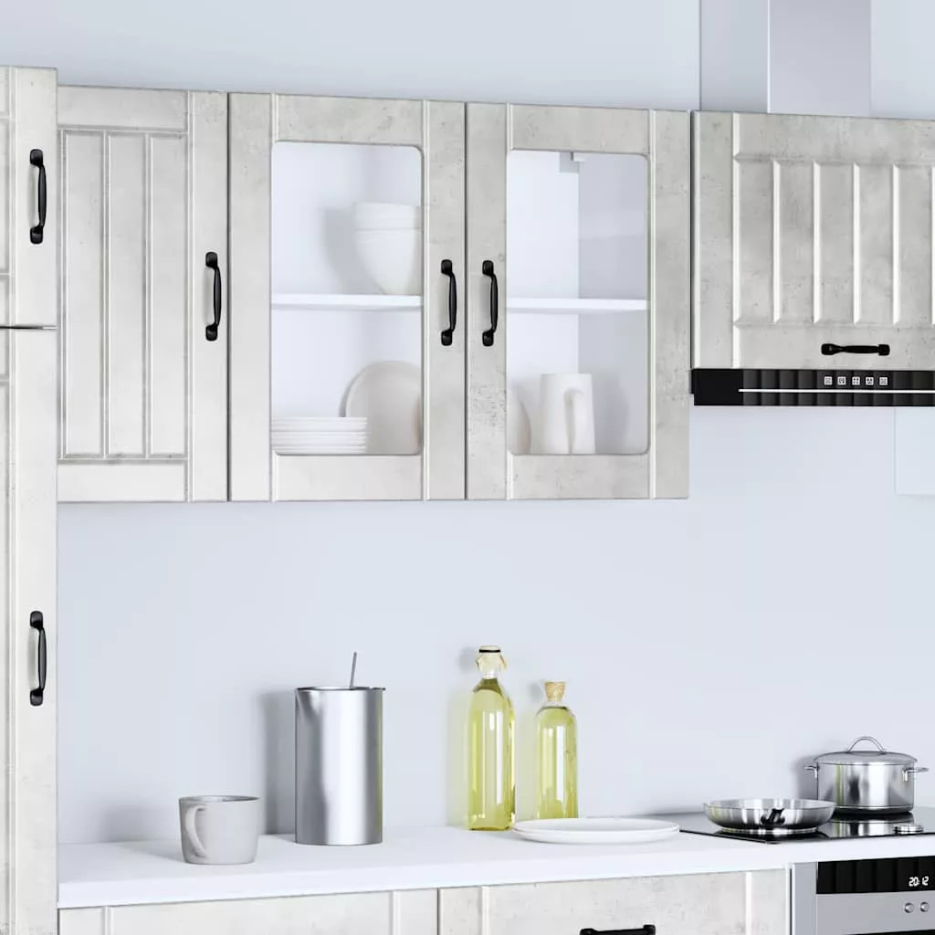 Konyhai fali szekrény üvegajtóval Lucca beton szürke műfa