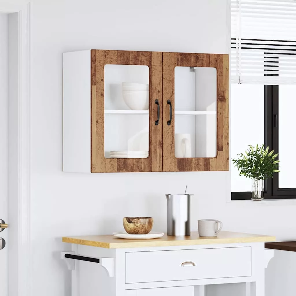 Konyhai fali szekrény üvegajtóval Lucca régi fából
