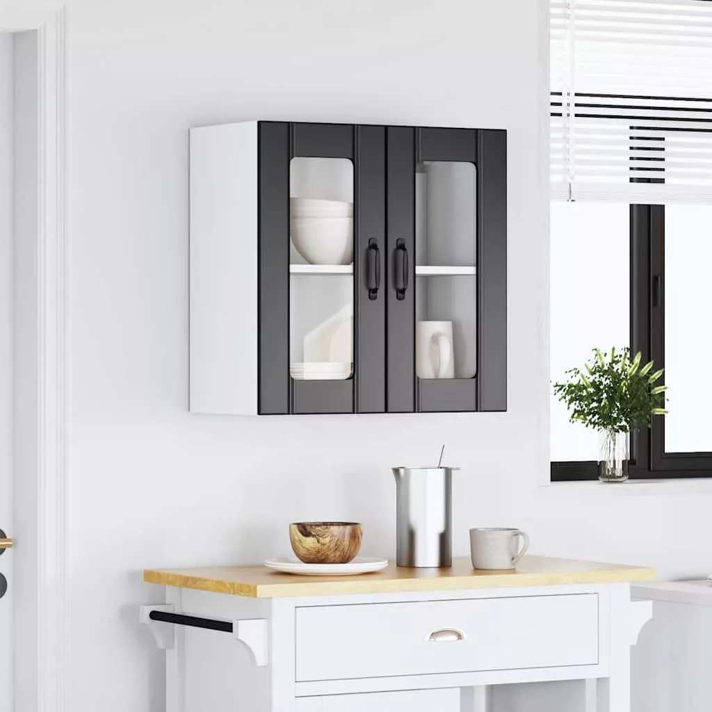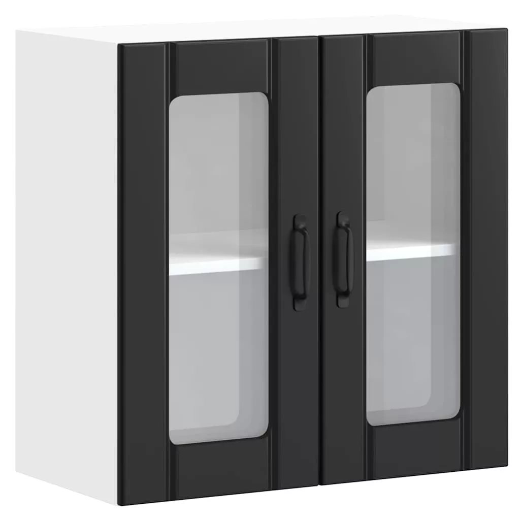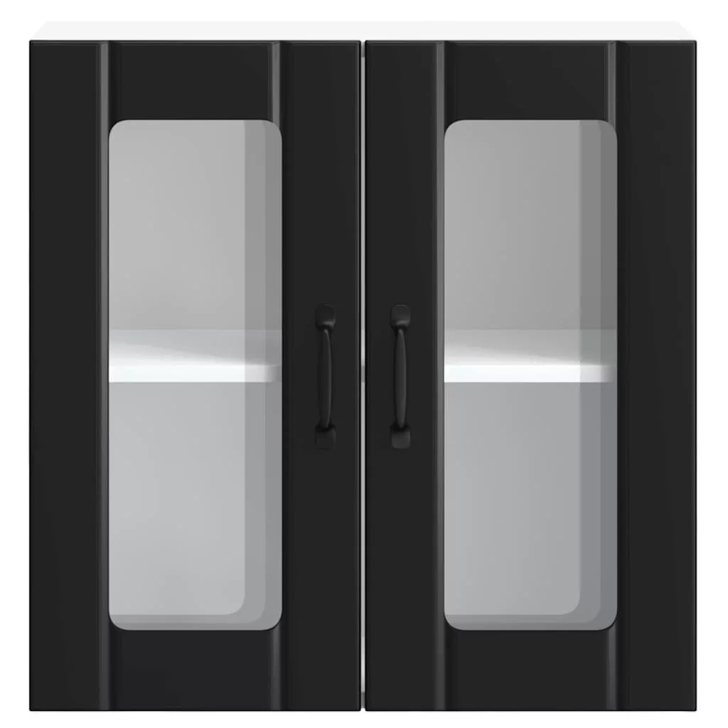 Konyhai fali szekrény üvegajtóval Lucca fekete színű fűrészáru