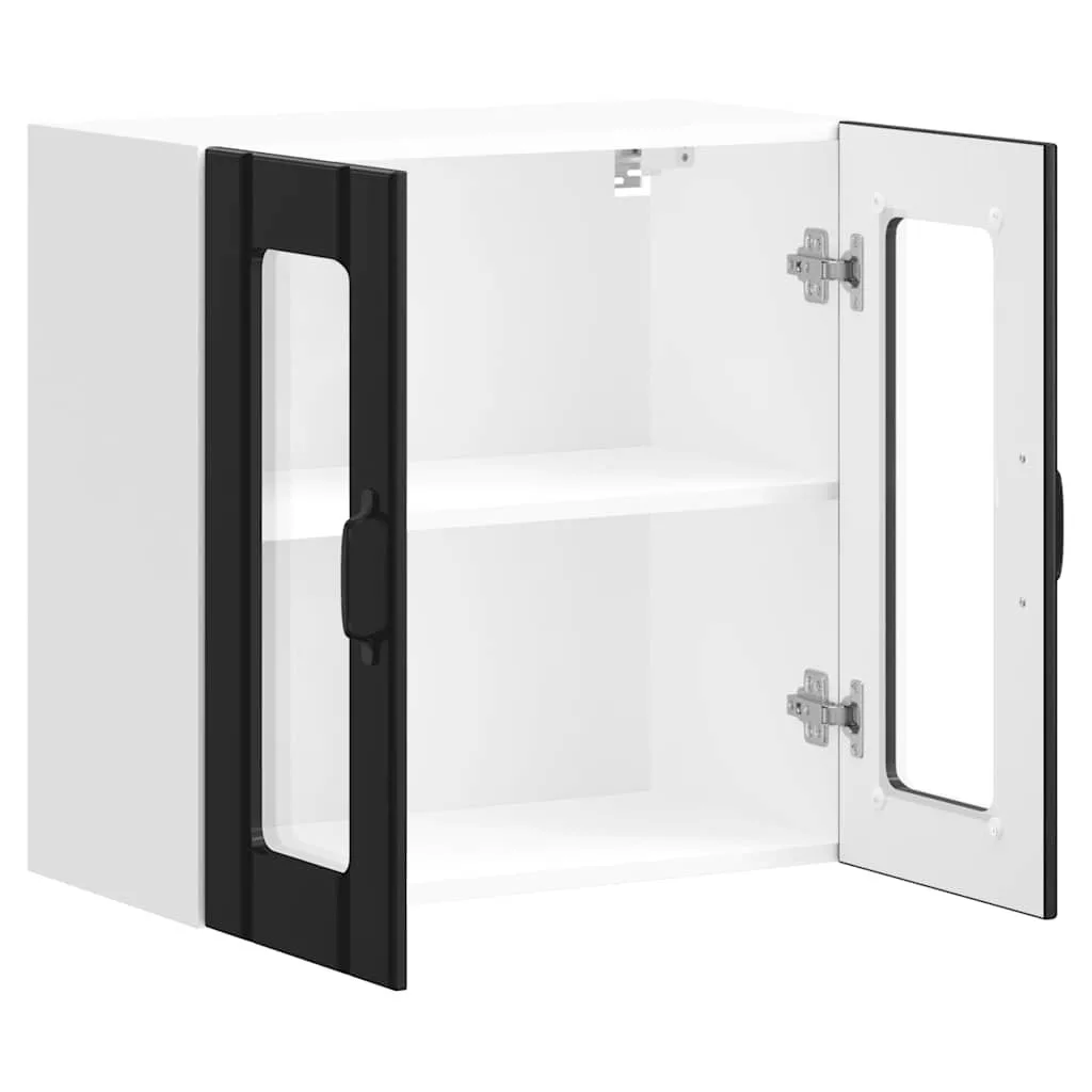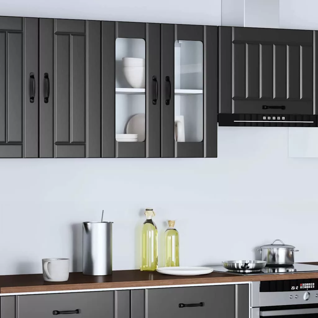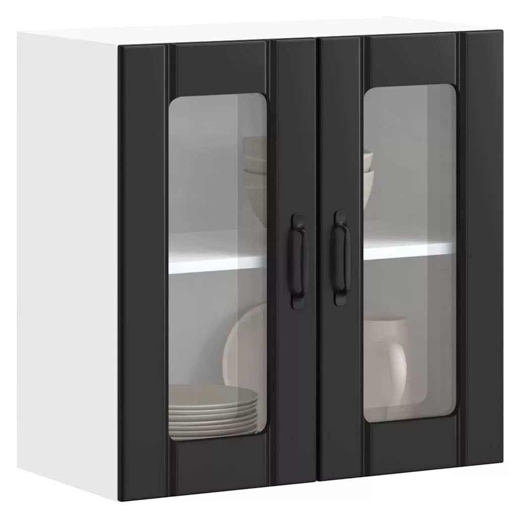 Konyhai fali szekrény üvegajtóval Lucca fekete színű fűrészáru