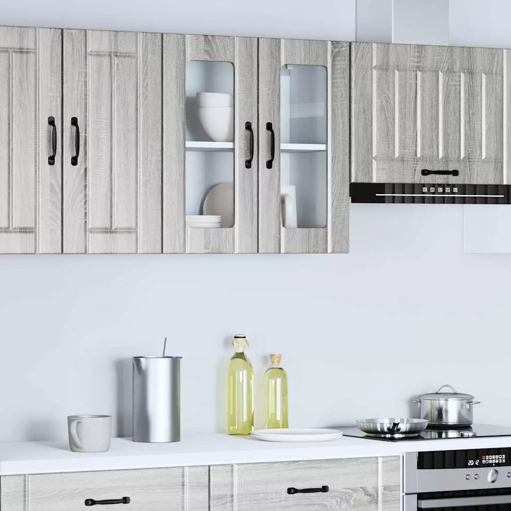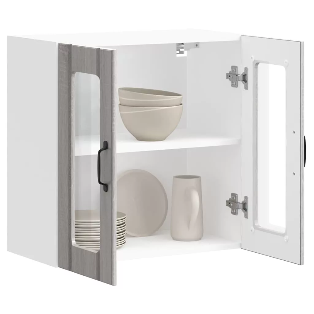 Konyhai fali szekrény üvegajtóval Lucca szürke sonoma műfa
