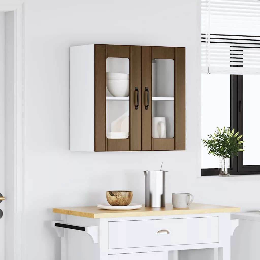 Konyhai fali szekrény üvegajtóval Lucca barna tölgy színű műfa