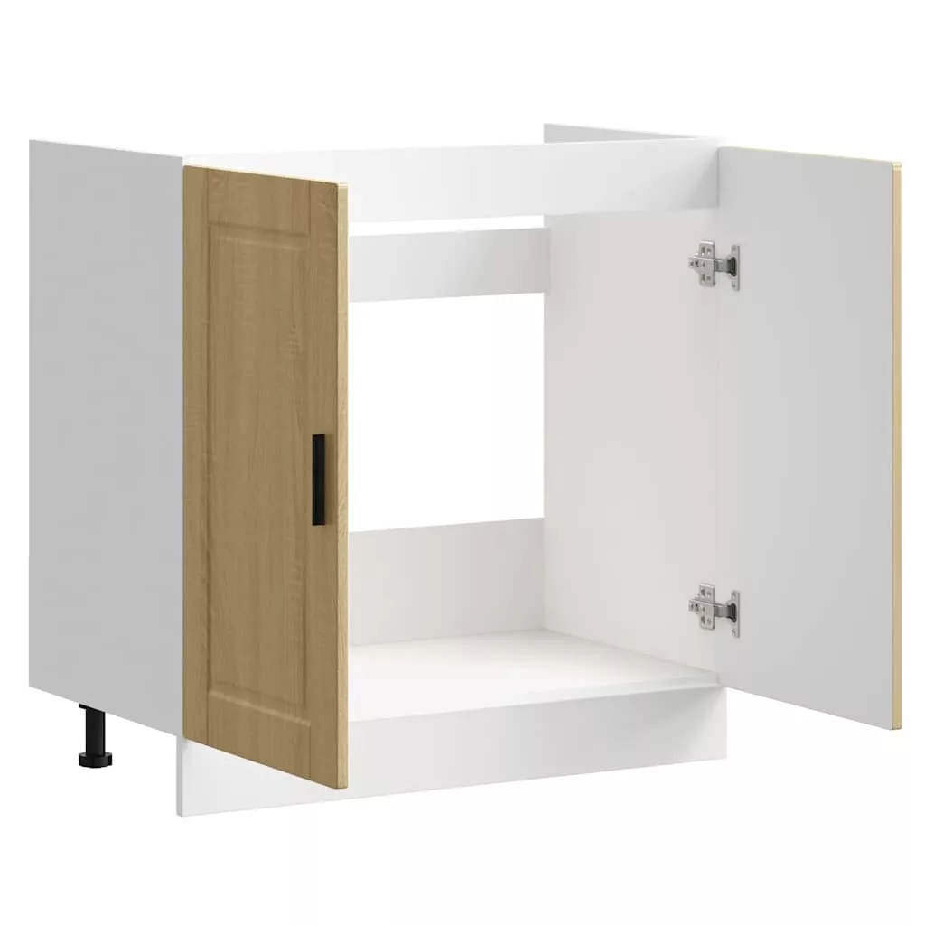 Ez a mosogató alszekrény optimalizálja konyhai helyét, és bőséges tárolóhelyet biztosít személyes tárgyai számára! Stabil és tartós anyag: A szerelt fa tartós és stabil anyag sima felülettel, amely ellenáll a nedvességnek, a vetemedésnek és a hasadásnak, így megbízható választás különféle célokhoz.Bőséges tárolóhely: A mosogató alszekrény elegendő helyet kínál a tálak, tányérok, edények és egyéb konyhai eszközök tárolására.Praktikus ajtók: Az ajtó segít fenntartani a tiszta és rendezett teret azáltal, hogy elrejti a konyhai eszközöket és a mögöttük lévő rendetlenséget.Állítható lábak: A mosogatóaljzat lábai a konyhai elrendezésnek megfelelően állítható magasságúak.Könnyen karbantartható: A sima felületének köszönhetően ez a mosogatóaljzat könnyen tisztítható nedves ruhával, és kevesebb karbantartást igényel. Figyelem:A felborulás elkerülése érdekében ezt a terméket a mellékelt fali rögzítőeszközzel kell használni. Jó tudni:A falon belüli csavar(ok) és dugó(k) nem alaptartozékok. Keressen és használjon a falának megfelelő csavar(oka)t és dugó(ka)t. Ha bizonytalan, kérje szakember tanácsát. Gondosan olvassa el és kövesse a használati utasítás minden lépését.