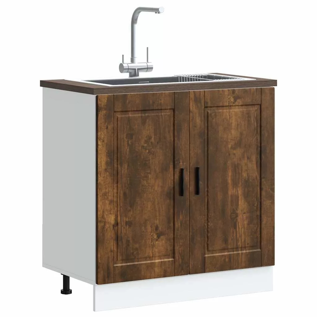 Ez a mosogató alszekrény optimalizálja konyhai helyét, és bőséges tárolóhelyet biztosít személyes tárgyai számára! Stabil és tartós anyag: A szerelt fa tartós és stabil anyag sima felülettel, amely ellenáll a nedvességnek, a vetemedésnek és a hasadásnak, így megbízható választás különféle célokhoz.Bőséges tárolóhely: A mosogató alszekrény elegendő helyet kínál a tálak, tányérok, edények és egyéb konyhai eszközök tárolására.Praktikus ajtók: Az ajtó segít fenntartani a tiszta és rendezett teret azáltal, hogy elrejti a konyhai eszközöket és a mögöttük lévő rendetlenséget.Állítható lábak: A mosogatóaljzat lábai a konyhai elrendezésnek megfelelően állítható magasságúak.Könnyen karbantartható: A sima felületének köszönhetően ez a mosogatóaljzat könnyen tisztítható nedves ruhával, és kevesebb karbantartást igényel. Figyelem:A felborulás elkerülése érdekében ezt a terméket a mellékelt fali rögzítőeszközzel kell használni. Jó tudni:A falon belüli csavar(ok) és dugó(k) nem alaptartozékok. Keressen és használjon a falának megfelelő csavar(oka)t és dugó(ka)t. Ha bizonytalan, kérje szakember tanácsát. Gondosan olvassa el és kövesse a használati utasítás minden lépését.