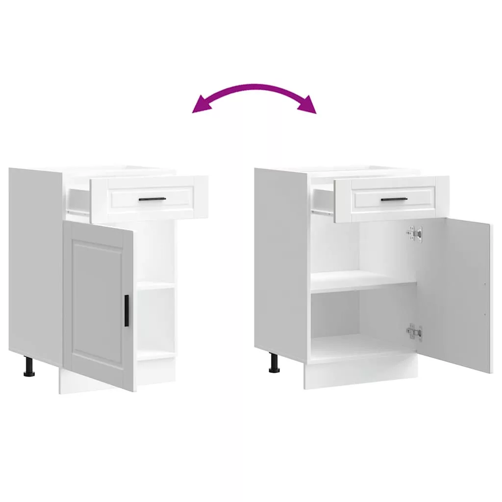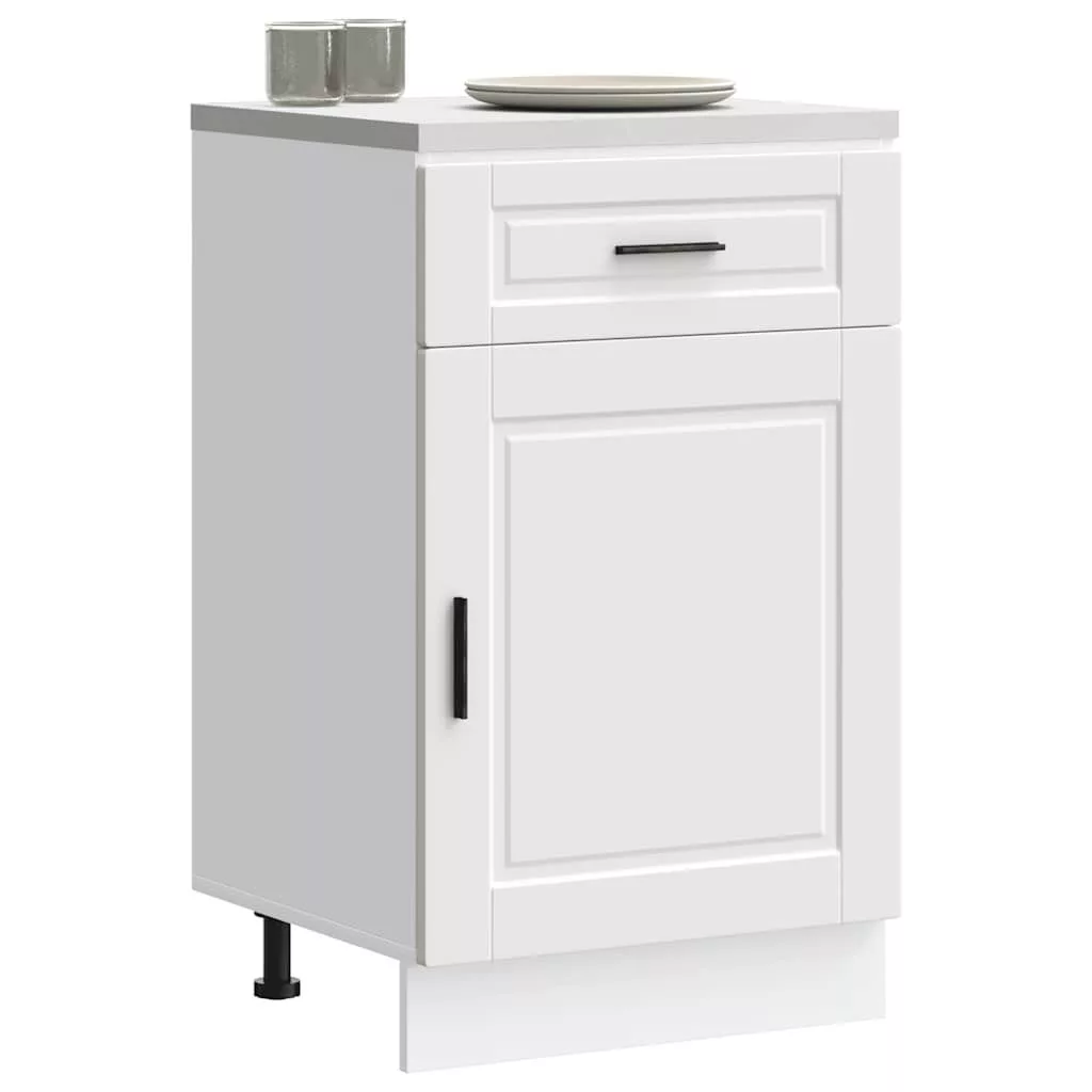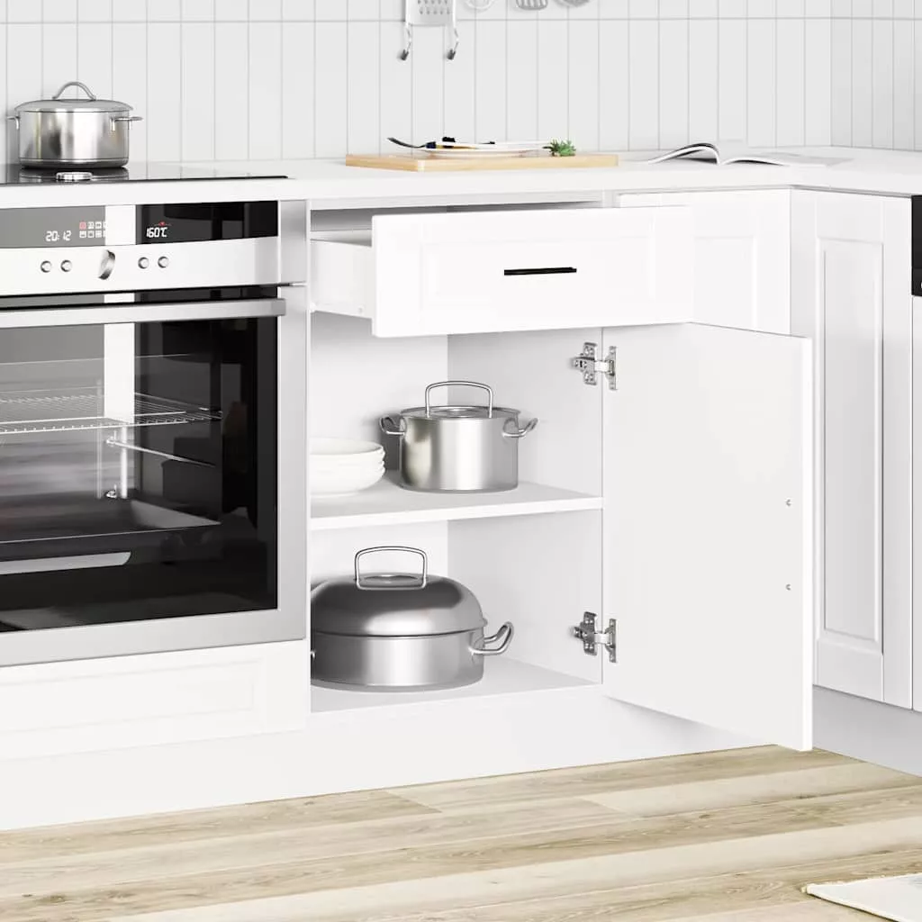 Ez a konyhai alapszekrény optimalizálja a konyhai teret, és bőséges tárolóhelyet biztosít személyes tárgyai számára! Stabil és tartós anyag: A szerelt fa tartós és stabil anyag sima felülettel, amely ellenáll a nedvességnek, a vetemedésnek és a hasadásnak, így megbízható választás különféle célokhoz.Bőséges tárolóhely: A konyhai alapszekrény elegendő helyet kínál a tálak, tányérok, edények és egyéb konyhai eszközök tárolására.Praktikus ajtók: Az ajtó segít fenntartani a tiszta és rendezett teret azáltal, hogy elrejti a konyhai eszközöket és a mögöttük lévő rendetlenséget.Állítható lábak: A szekrény lábai a konyhai elrendezésnek megfelelően állítható magasságúak.Könnyen karbantartható: A sima felületének köszönhetően ez a konyhai alszekrény könnyen tisztítható nedves ruhával, és kevesebb karbantartást igényel. Figyelem:A felborulás elkerülése érdekében ezt a terméket a mellékelt fali rögzítőeszközzel kell használni. Jó tudni:A falon belüli csavar(ok) és dugó(k) nem alaptartozékok. Keressen és használjon a falának megfelelő csavar(oka)t és dugó(ka)t. Ha bizonytalan, kérje szakember tanácsát. Gondosan olvassa el és kövesse a használati utasítás minden lépését.