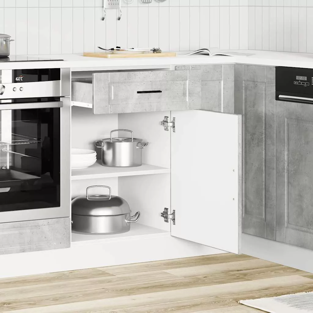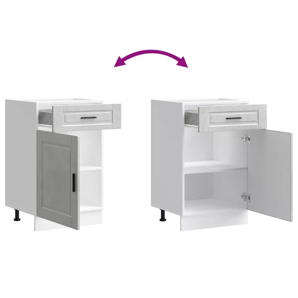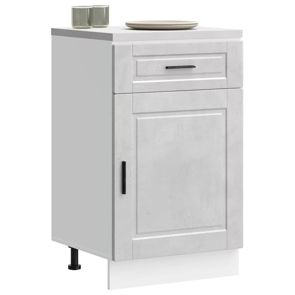 Porto betonszürke szerelt fa konyhai alapszekrény