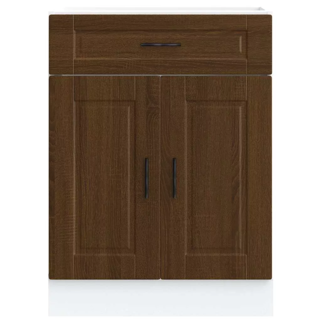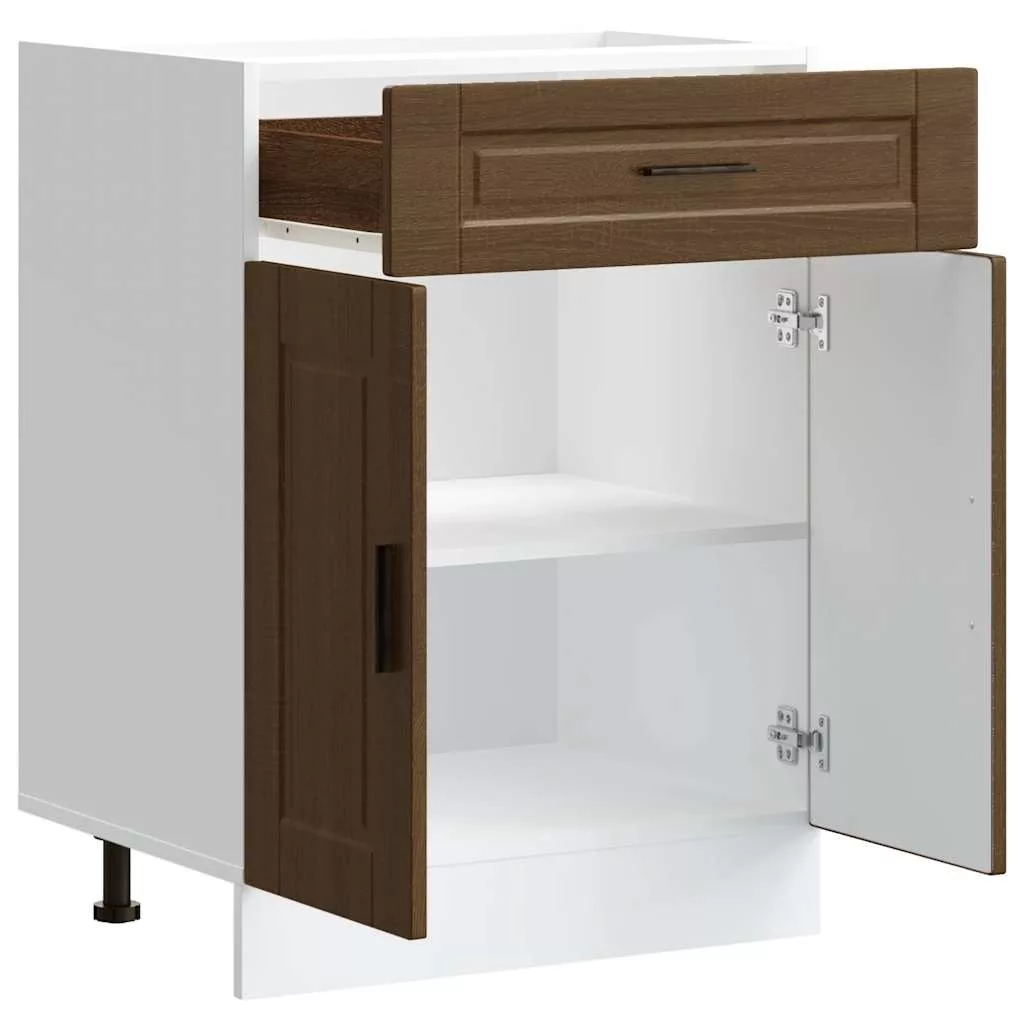 Porto barna tölgy színű szerelt fa konyhai alapszekrény
