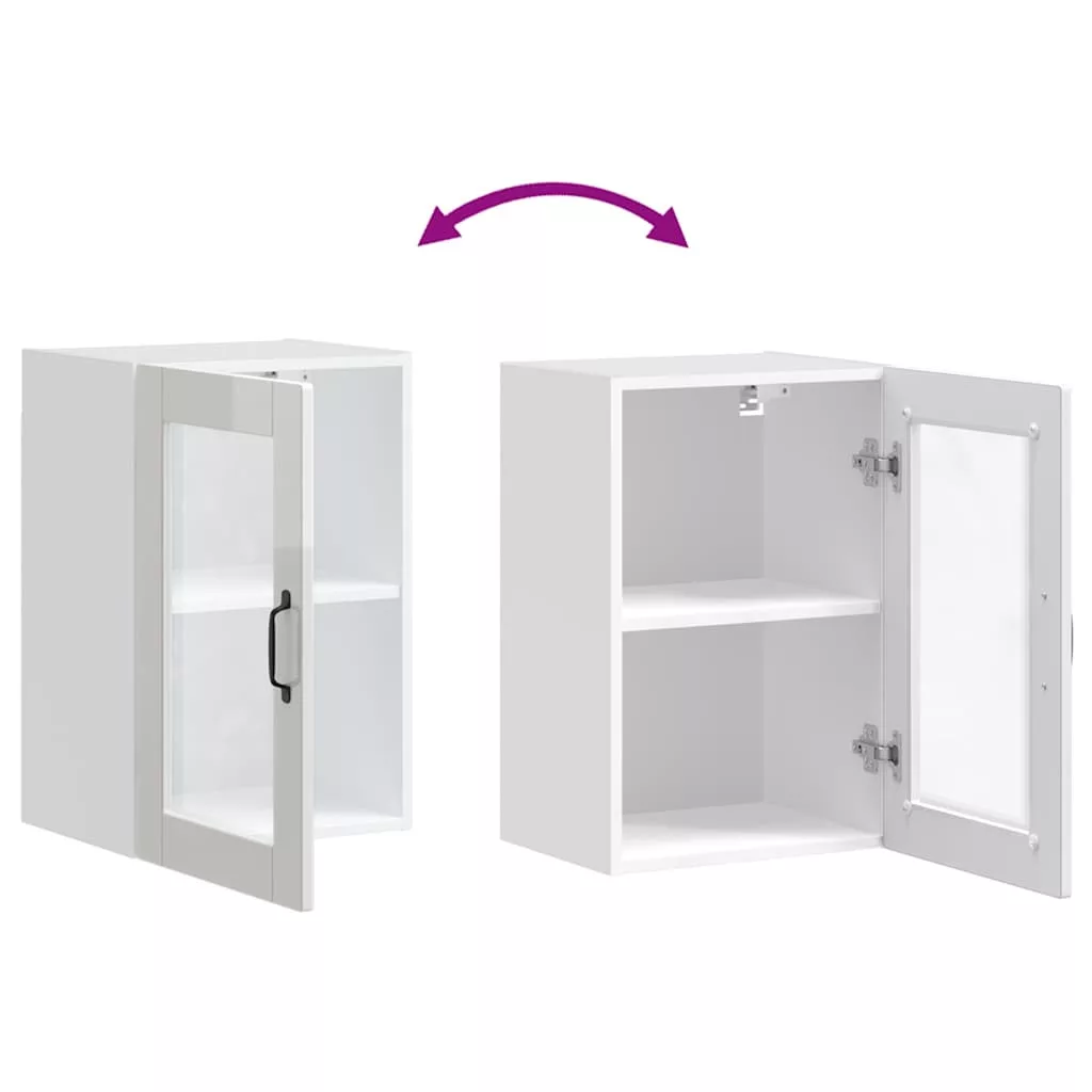 Konyhai fali szekrény üvegajtóval Porto" Magas fényű fehér"