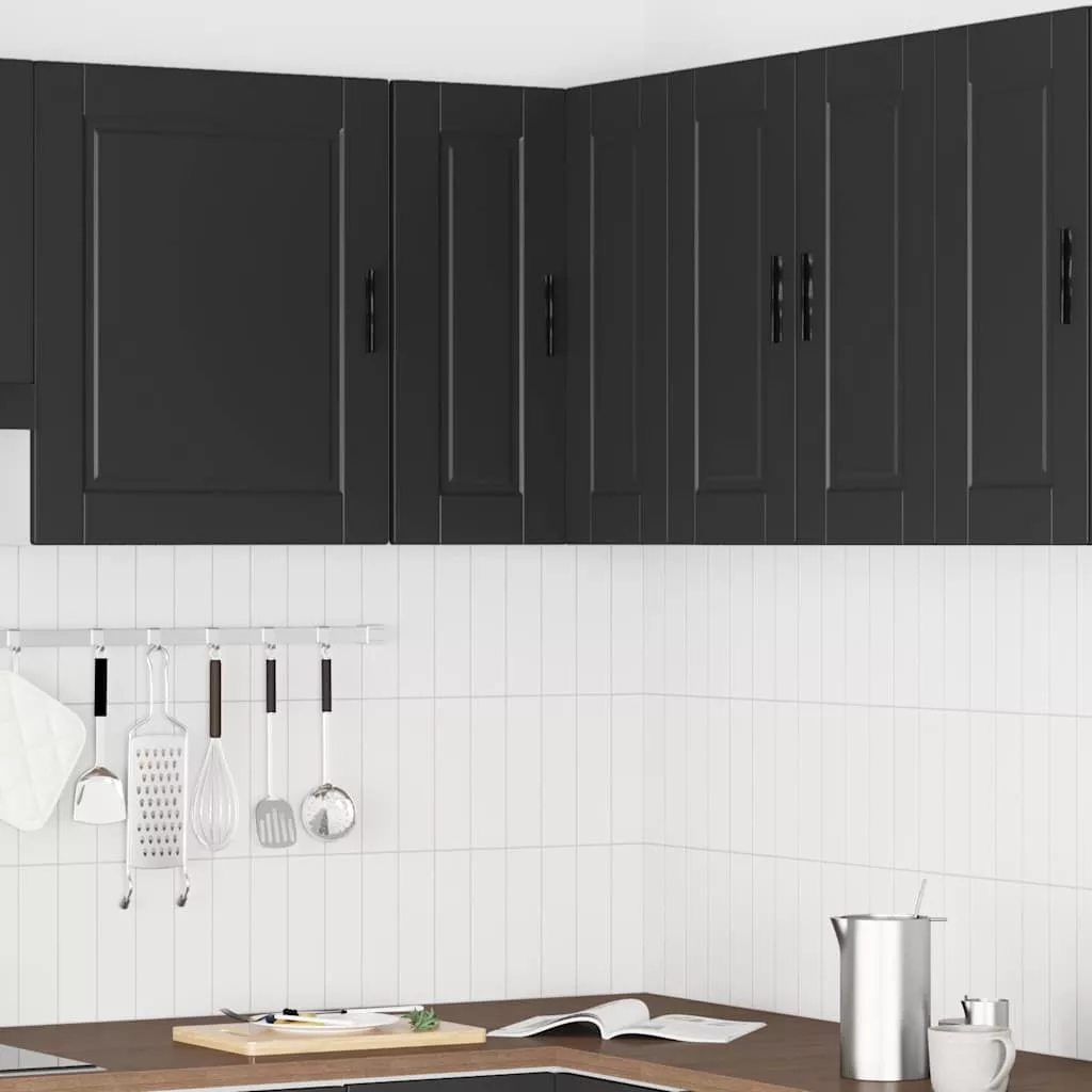 Porto fekete szerelt fa konyhai fali sarokszekrény