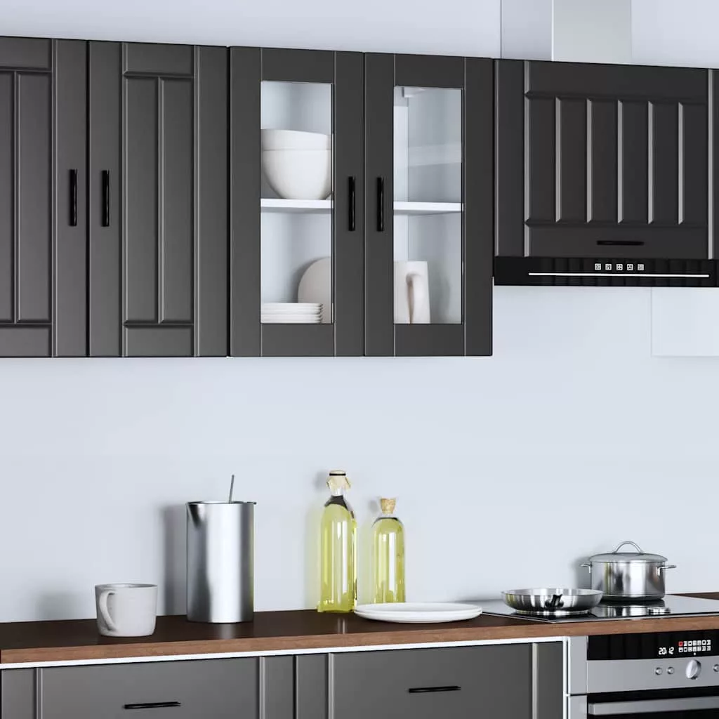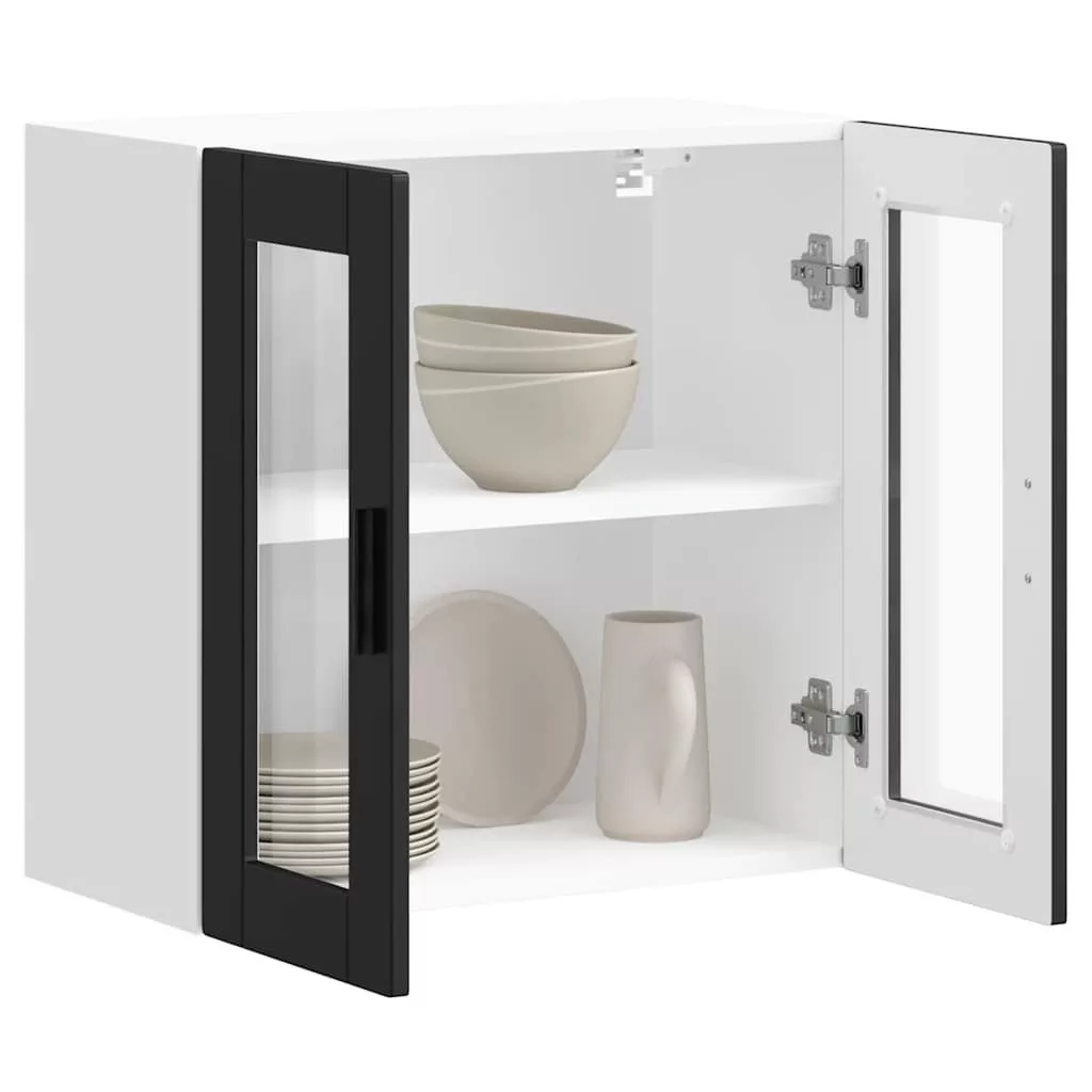 konyhai fali szekrény üvegajtóval Porto" Fekete színű"