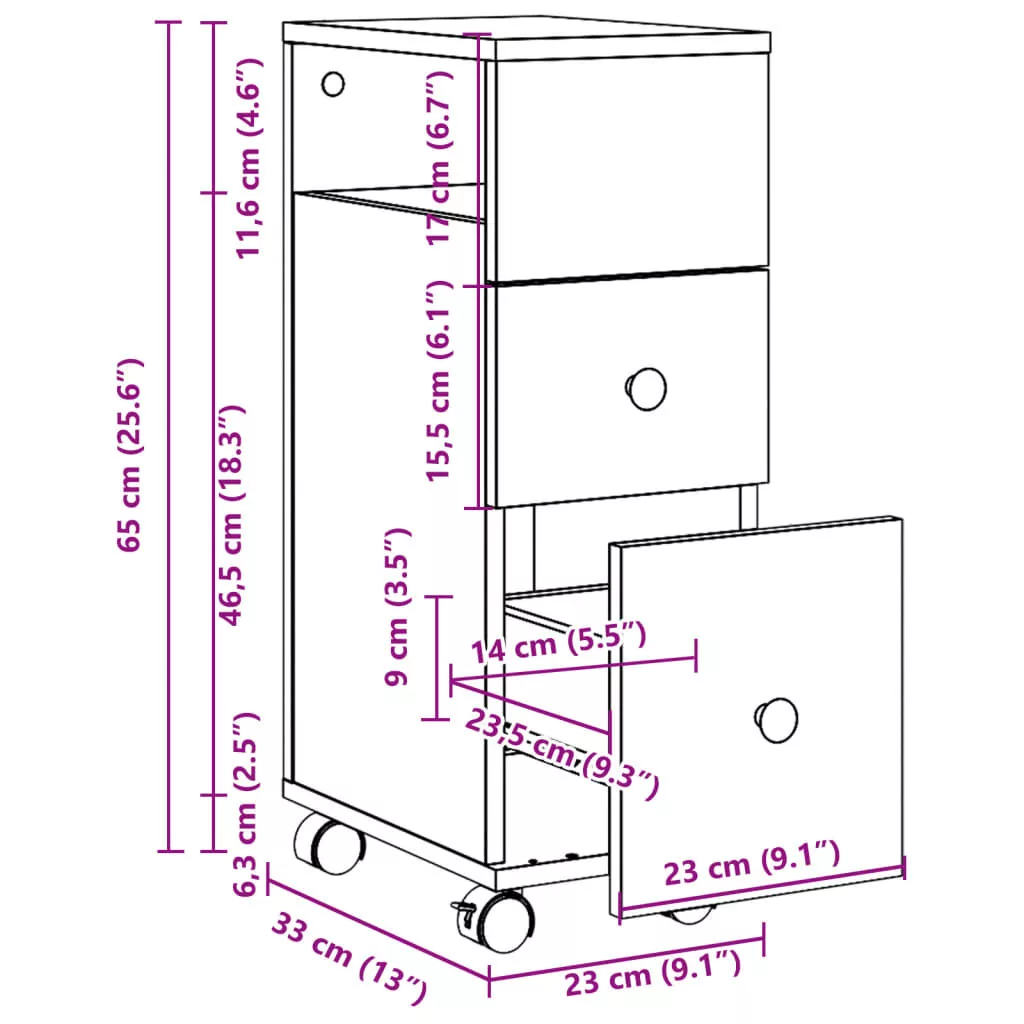 Ez a klasszikus, keskeny fürdőszobaszekrény dekoratív és praktikus kiegészítője lesz otthonának. Stabil és tartós anyag: A szerelt fa tartós és stabil anyag sima felülettel, amely ellenáll a nedvességnek, a vetemedésnek és a hasadásnak, így megbízható választás különféle célokhoz.Bőséges tárolóhely: A keskeny fürdőszobai tároló bőséges tárolóhelyet biztosít a minden használatos holmik rendszerezéséhez, és megóvja őket a portól és szennyeződésektől.Könnyen mozgatható: Ez a vékony fürdőszobaszekrény, amely négy forgatható kerékkel rendelkezik, könnyen áthelyezhető a kívánt helyre. A kerekek közül kettő lezárható, így a szekrény stabilan a helyén marad.Könnyen használható: A karcsú fürdőszobai tároló minőségi fém sínekkel rendelkezik, amelyek simán mozgathatók, így könnyen hozzáférhet a tárolt tárgyakhoz.Széles körű alkalmazás: Ez a vékony fürdőszobaszekrény tárolószekrényként vagy fiókos szekrényként használható a fürdőszobában, a konyhában, vagy a nappaliban, az Ön igényeitől függően.