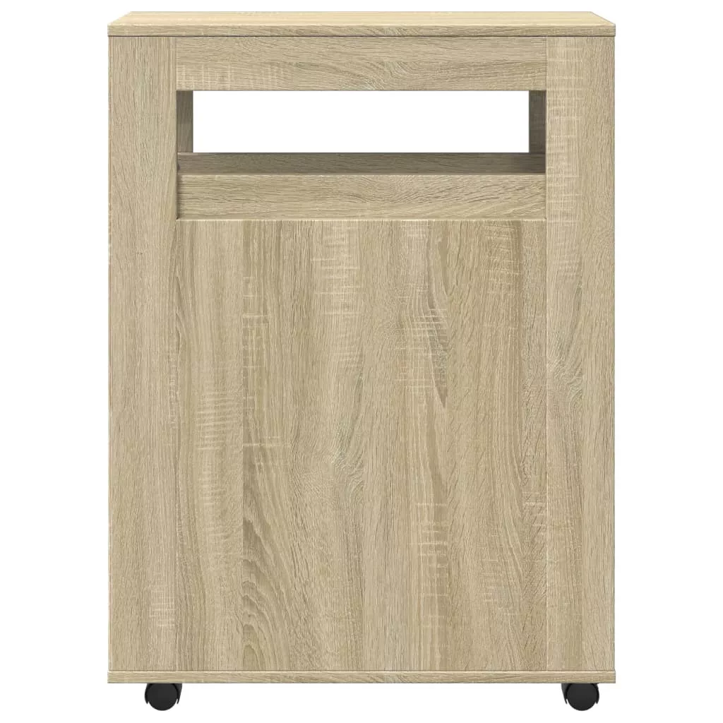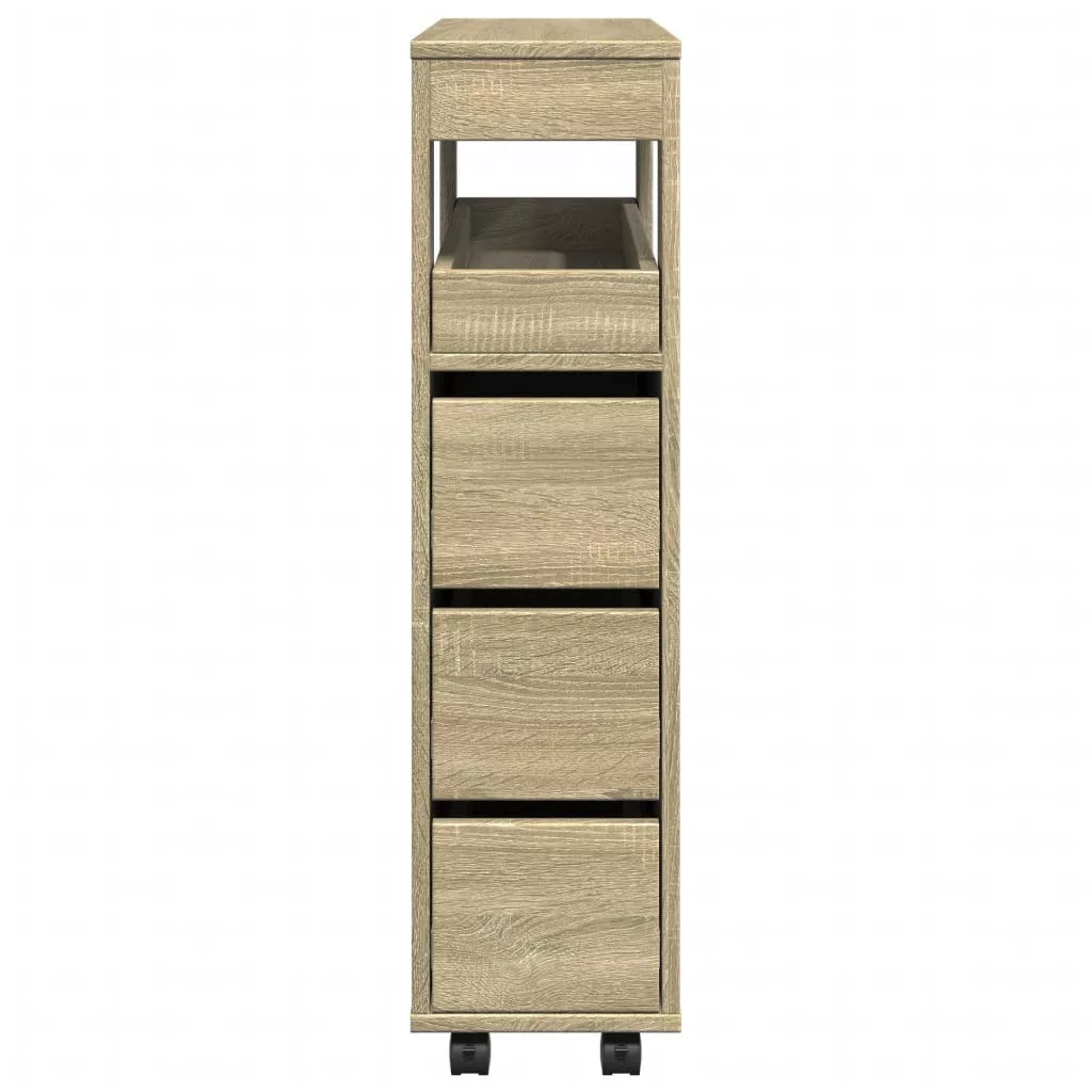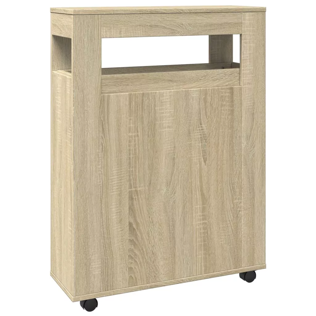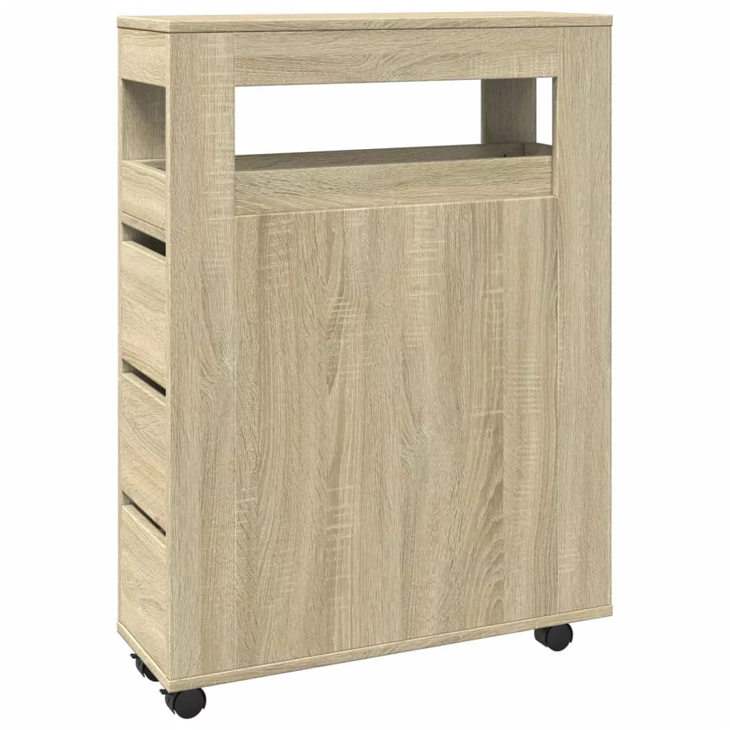 sonoma tölgy színű szerelt fa görgős keskeny fürdőszobaszekrény