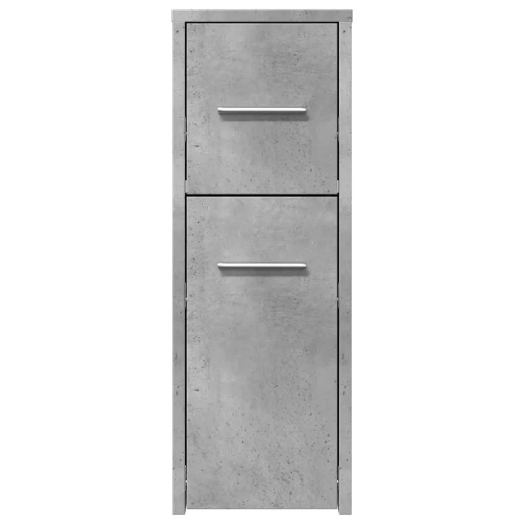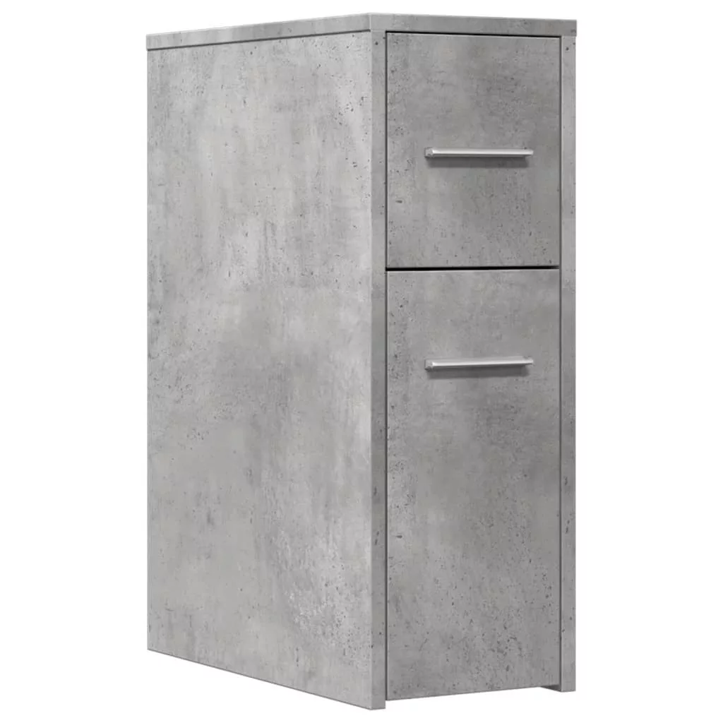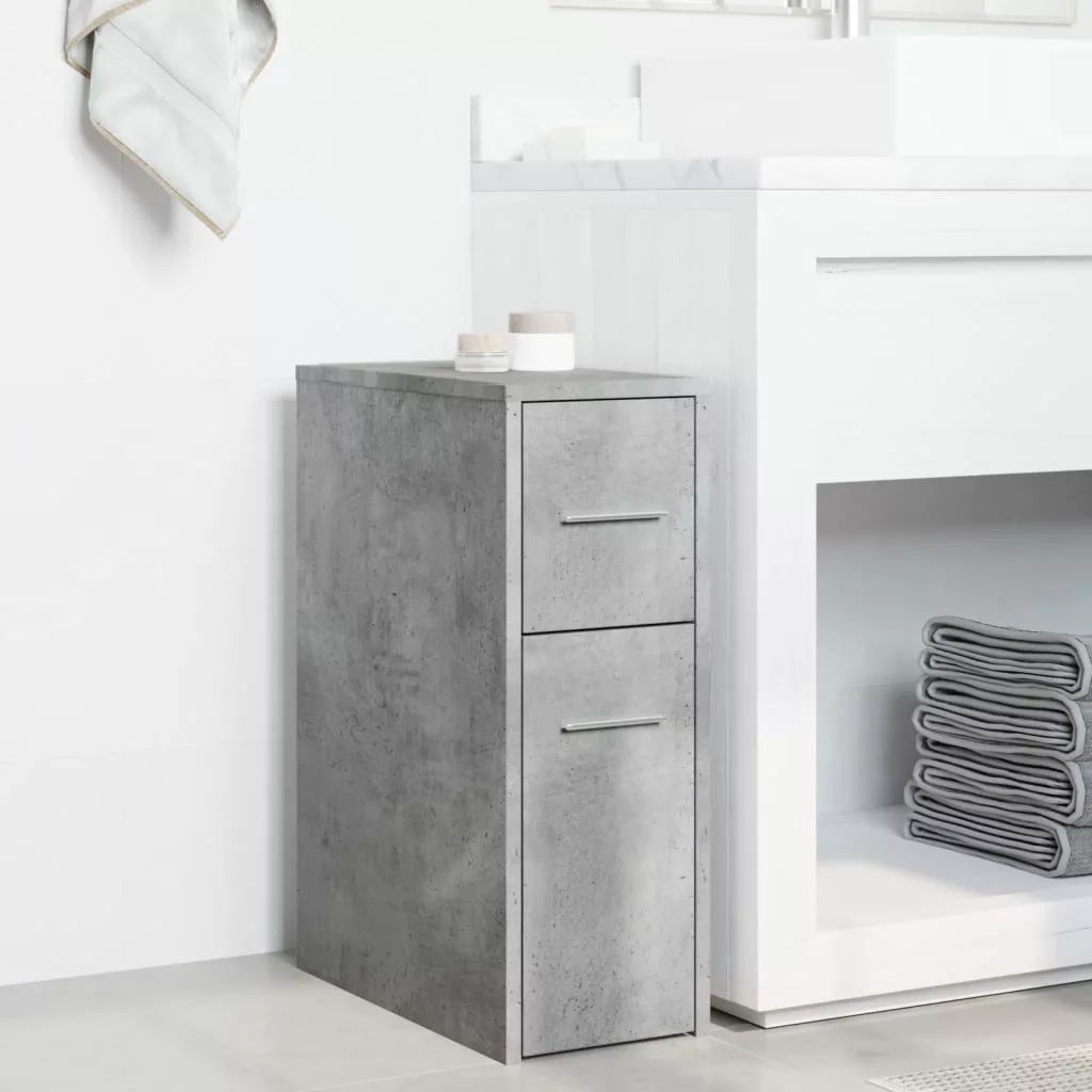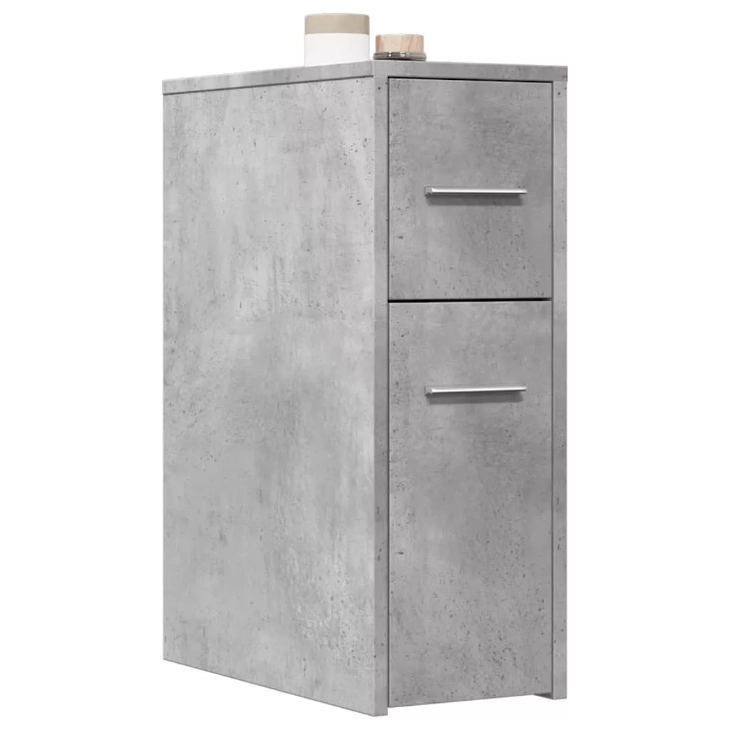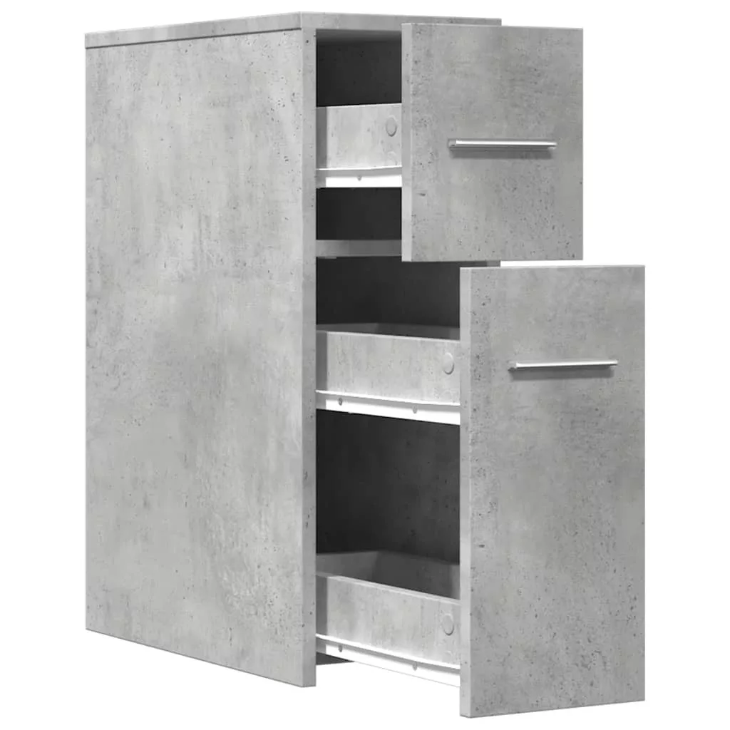 betonszürke szerelt fa görgős keskeny fürdőszobaszekrény