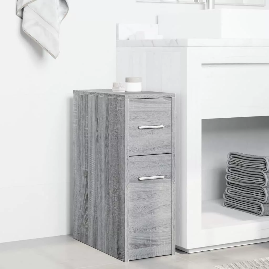 szürke sonoma szerelt fa görgős keskeny fürdőszobaszekrény