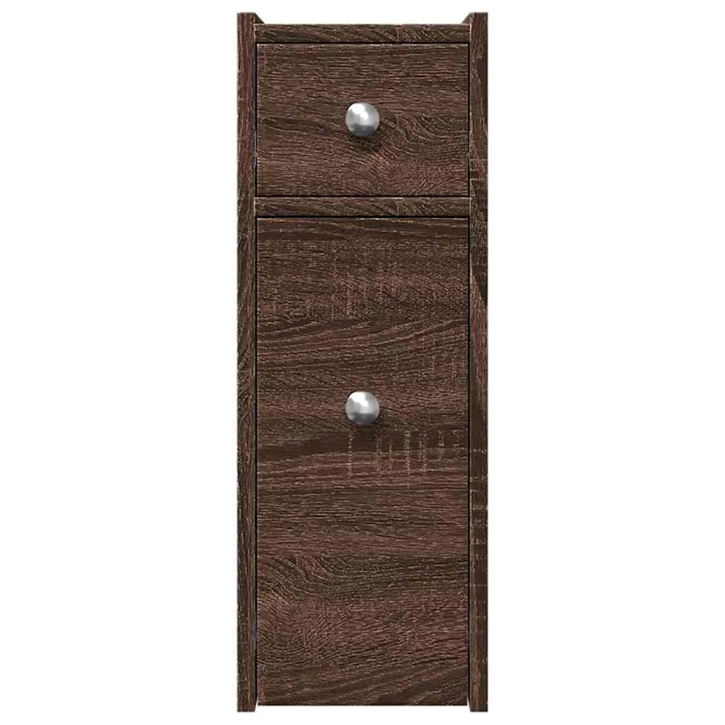 barna tölgy színű szerelt fa görgős keskeny fürdőszobaszekrény