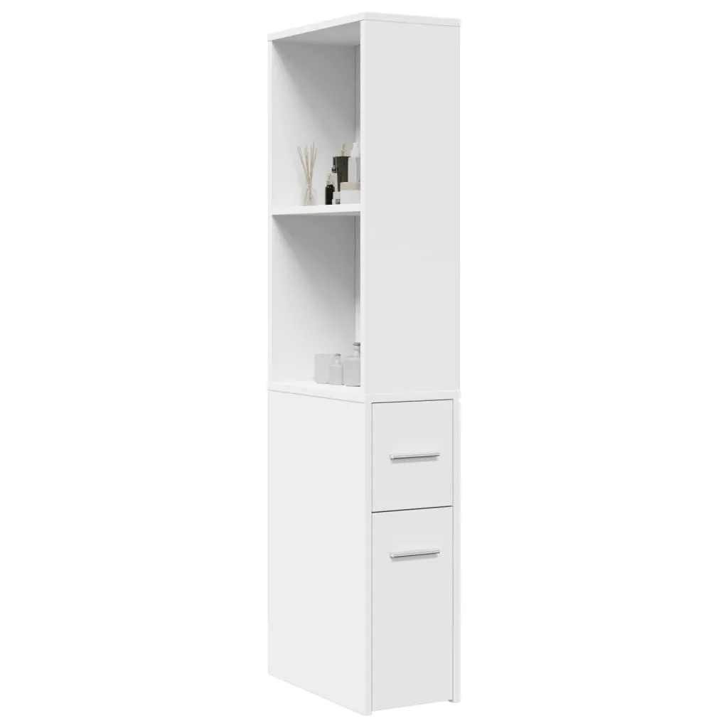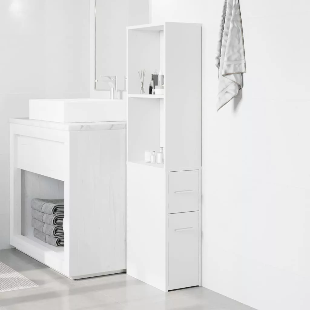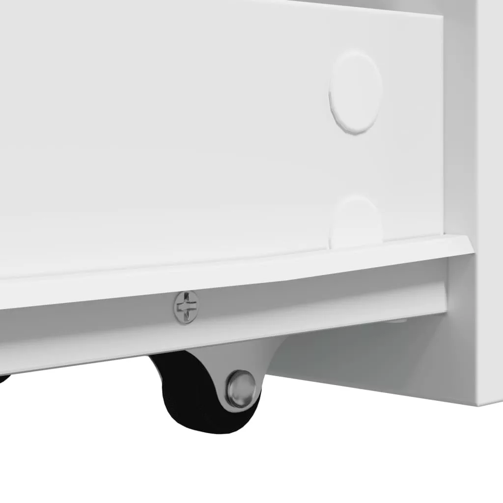 fehér szerelt fa keskeny fürdőszobaszekrény kerekekkel