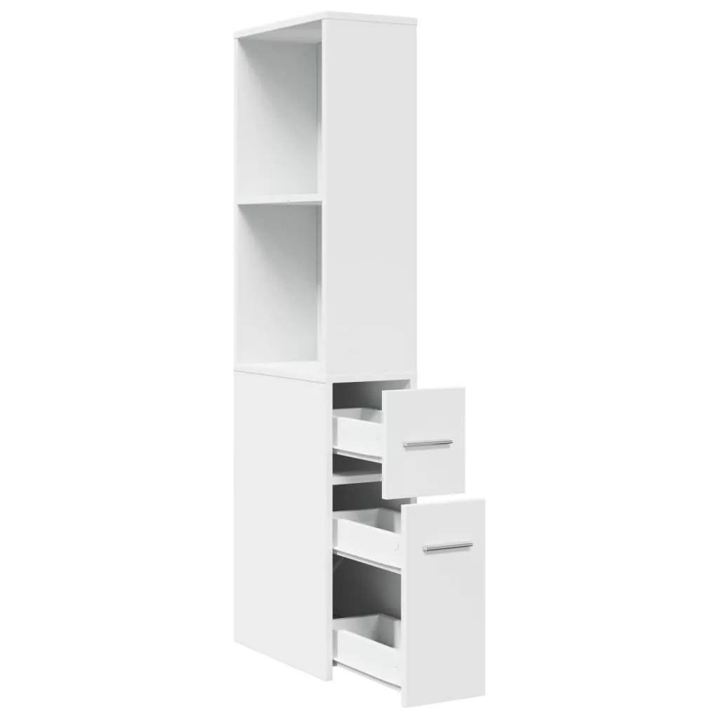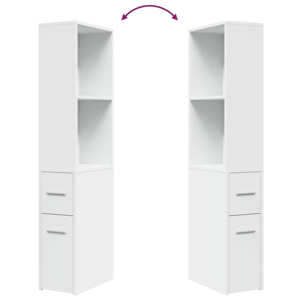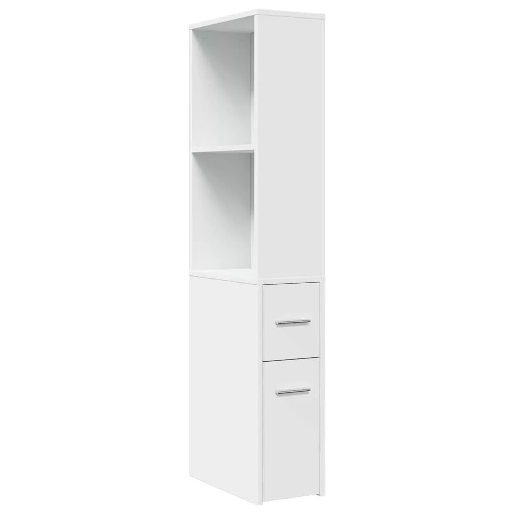 fehér szerelt fa keskeny fürdőszobaszekrény kerekekkel