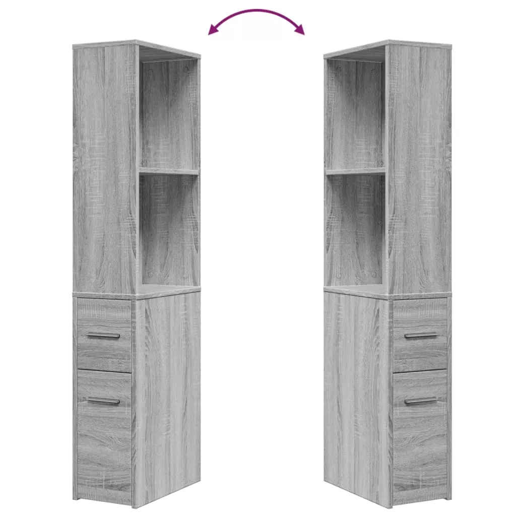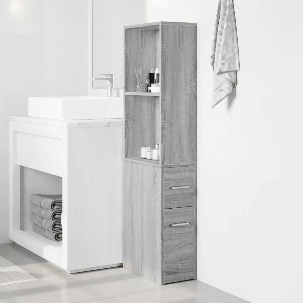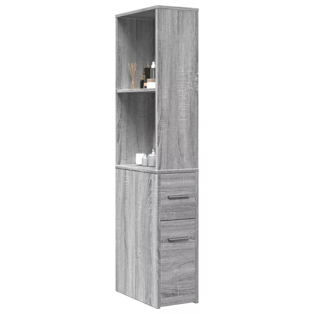 szürke sonoma szerelt fa görgős keskeny fürdőszobaszekrény