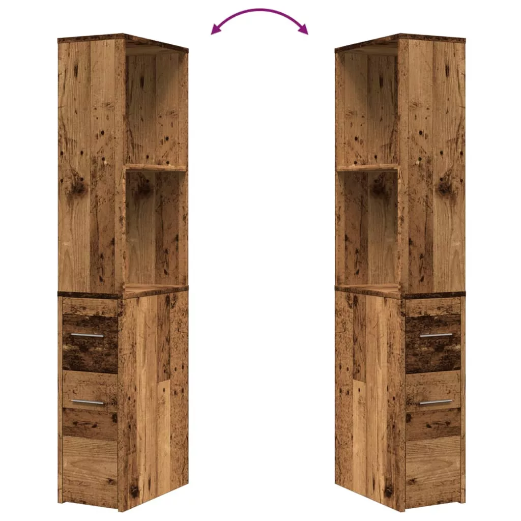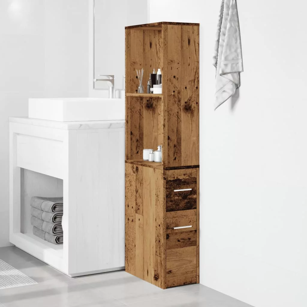 antik fa színű szerelt fa keskeny fürdőszobaszekrény kerekekkel