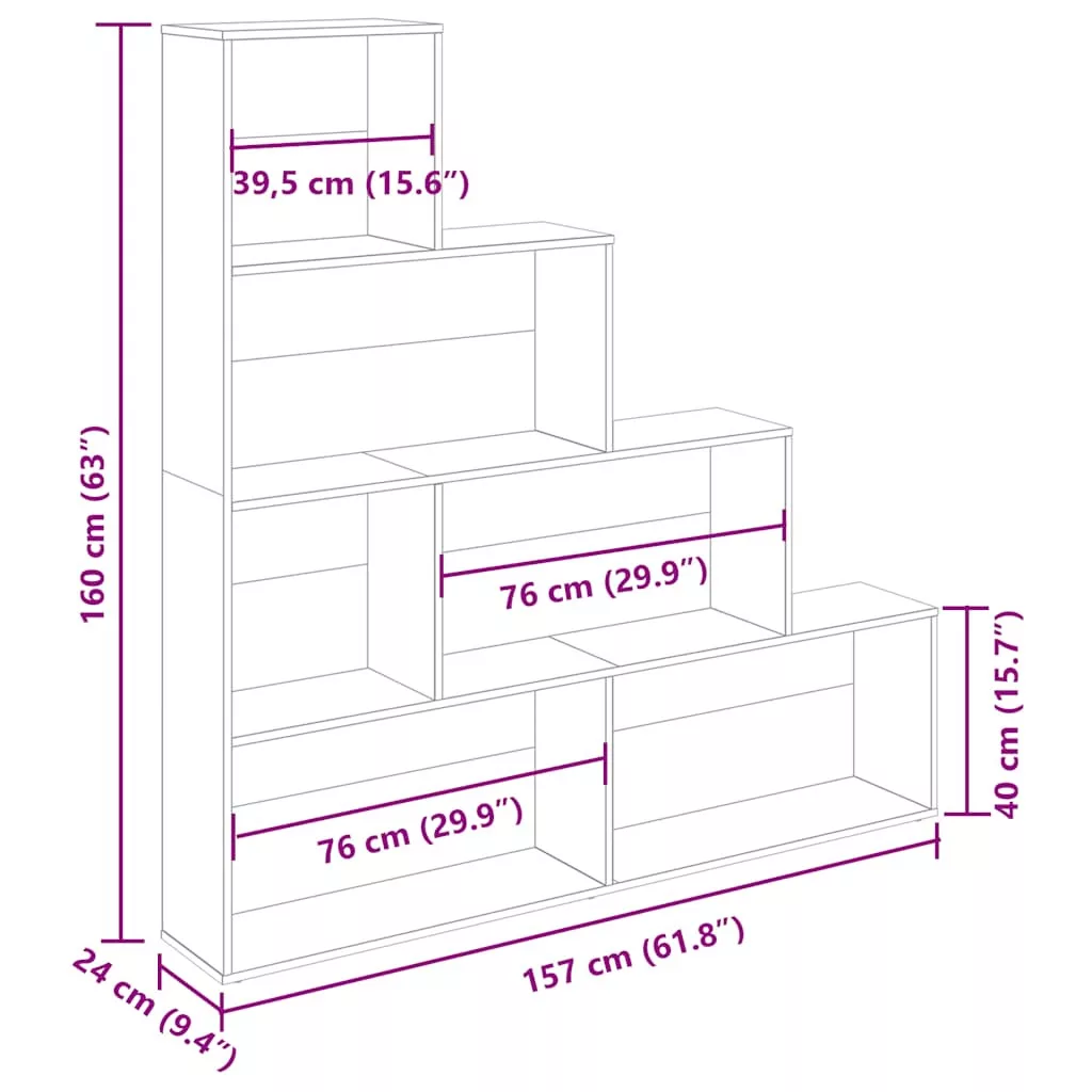 Ez a divatos könyvszekrény elegáns és klasszikus kialakításával otthona tökéletes, dekoratív és praktikus kiegészítője lesz. Erős anyag: A szerelt fa kivételes minőségű, sima felületű, szilárd, stabil, és ellenáll a nedvességnek.Tágas tárolóhely: Ez a könyvállvány 6 rekesszel rendelkezik, így bőséges helyet kínál magazinjai, könyvei, DVD-i, multimédiás eszközei és egyéb dísztárgyai kézközelben történő rendezett tárolásához.Sokoldalú felhasználás: A könyvszekrény ideális lesz könyvgyűjteményének. Használható akár bemutatópolcként is, melyre különböző dísztárgyakat, például fényképeket, díjakat, cserepes növényeket tehet.Könnyű tisztítás: A könyvespolc nedves ruhával könnyen tisztítható. Figyelem:A felborulás elkerülése érdekében ezt a terméket a mellékelt fali rögzítőeszközzel kell használni.