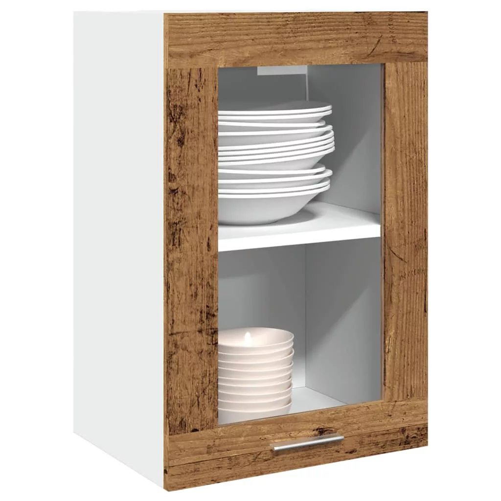 “Lyon” antik fa színű szerelt fa függő üvegszekrény