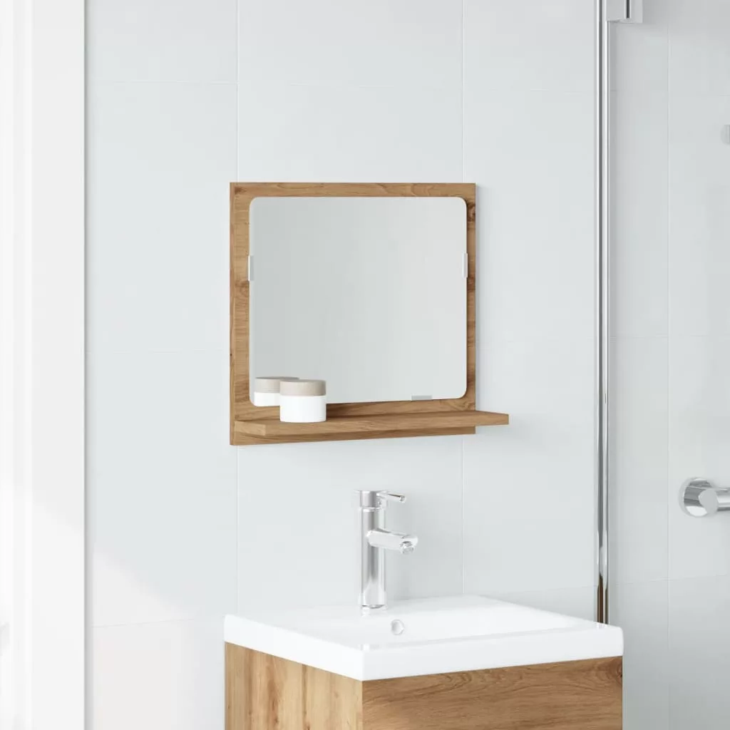 kézműves tölgy szerelt fa tükrös fürdőszobaszekrény 40x11x37 cm