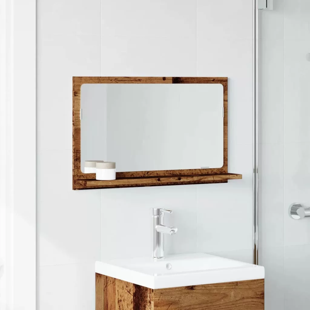 antik fa színű szerelt fa tükrös fürdőszobaszekrény 60x11x37 cm