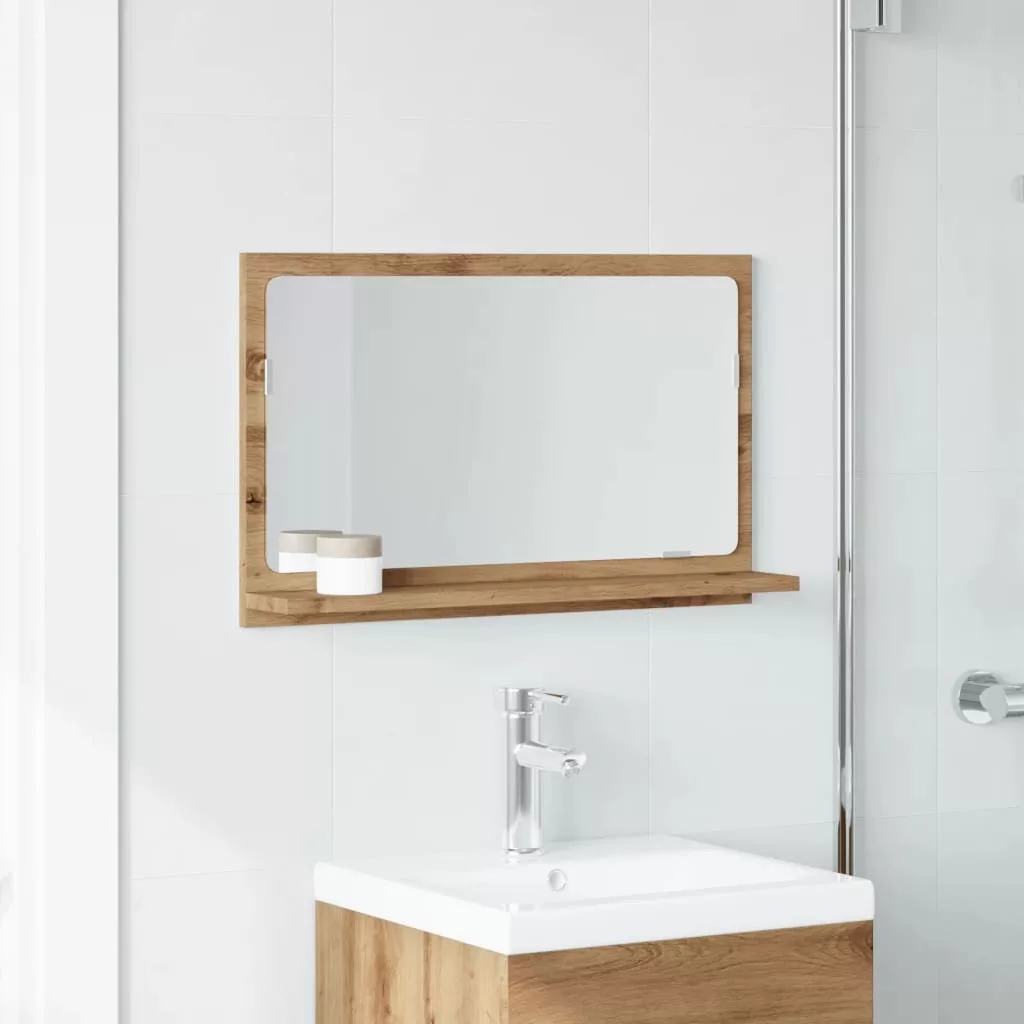 kézműves tölgy szerelt fa tükrös fürdőszobaszekrény 60x11x37 cm