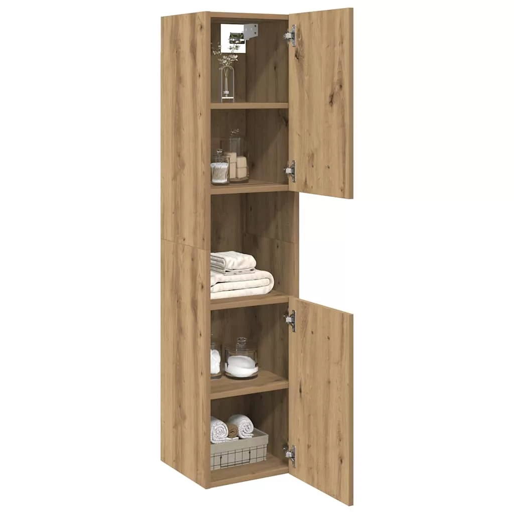 kézműves tölgy szerelt fa függő fürdőszobaszekrény 30x30x130 cm