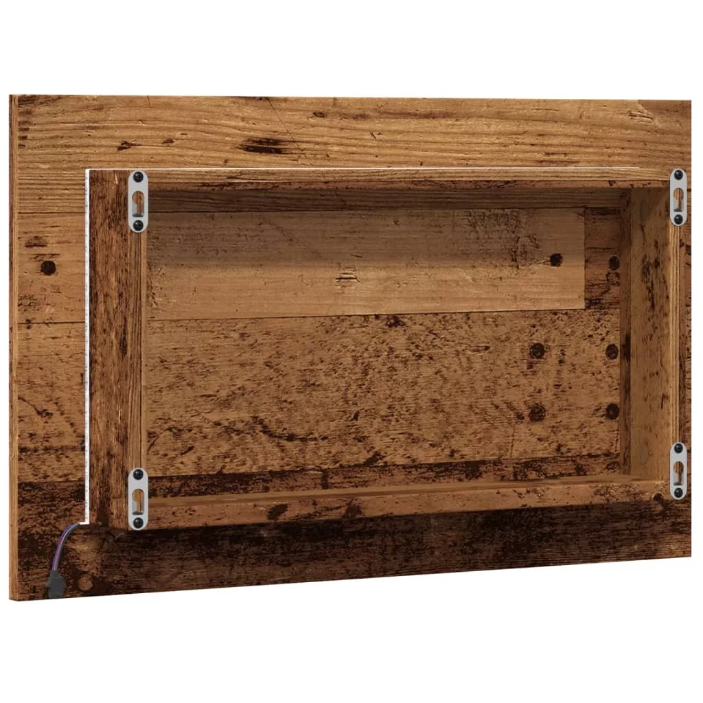 antik fa színű fürdőszobatükör LED-világítással 60x8,5x38 cm