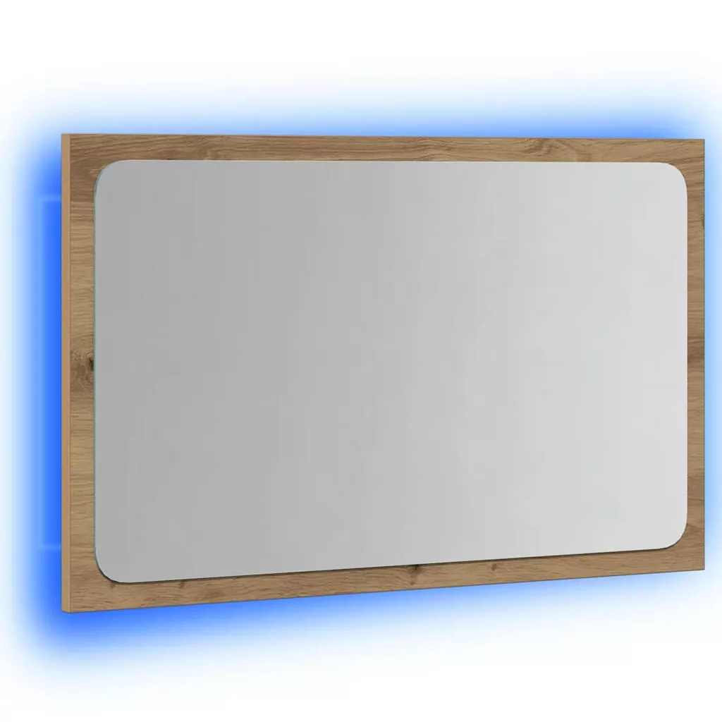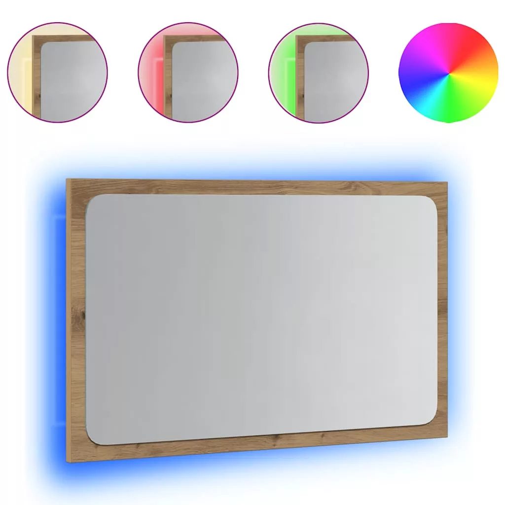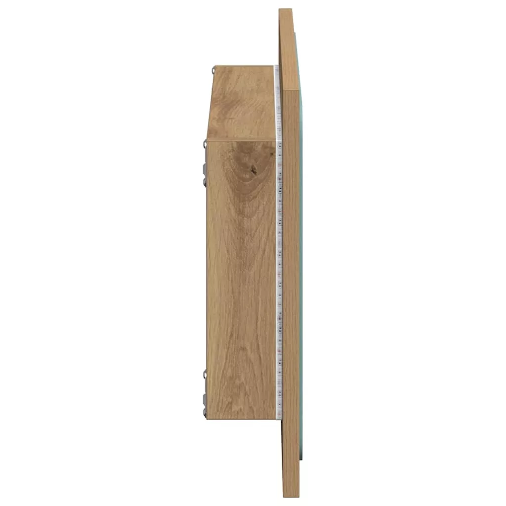kézműves tölgy színű LED-es fürdőszobatükör 60 x 8,5 x 38 cm
