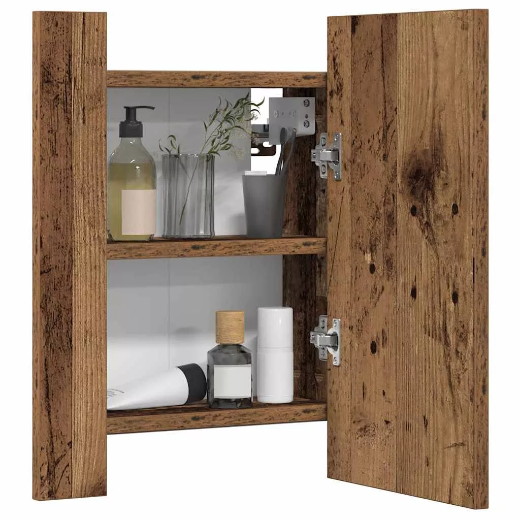 antik fa színű szerelt fa tükrös szekrény LED-del 40x12x45 cm
