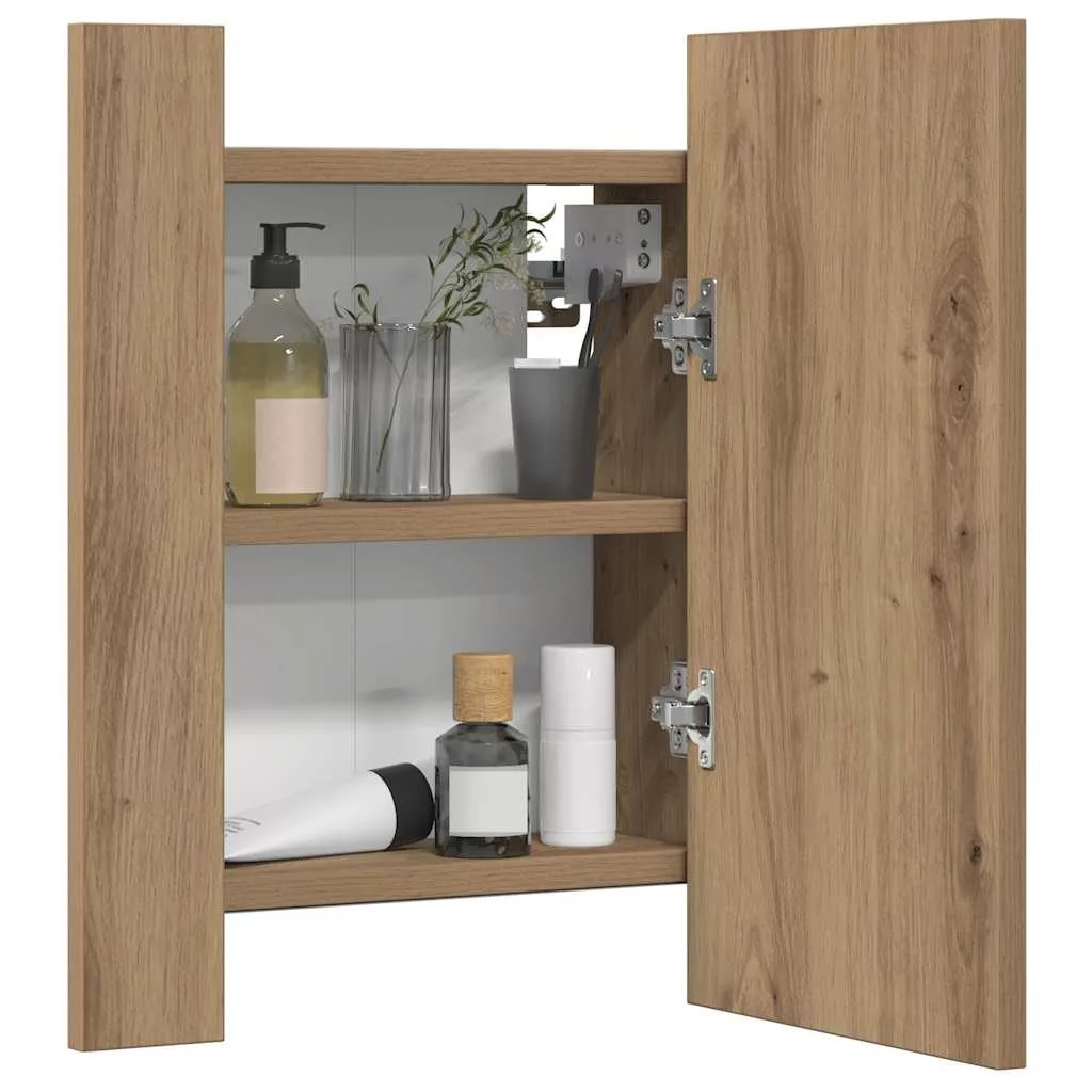 kézműves tölgy szerelt fa tükrös szekrény LED-del 40x12x45 cm
