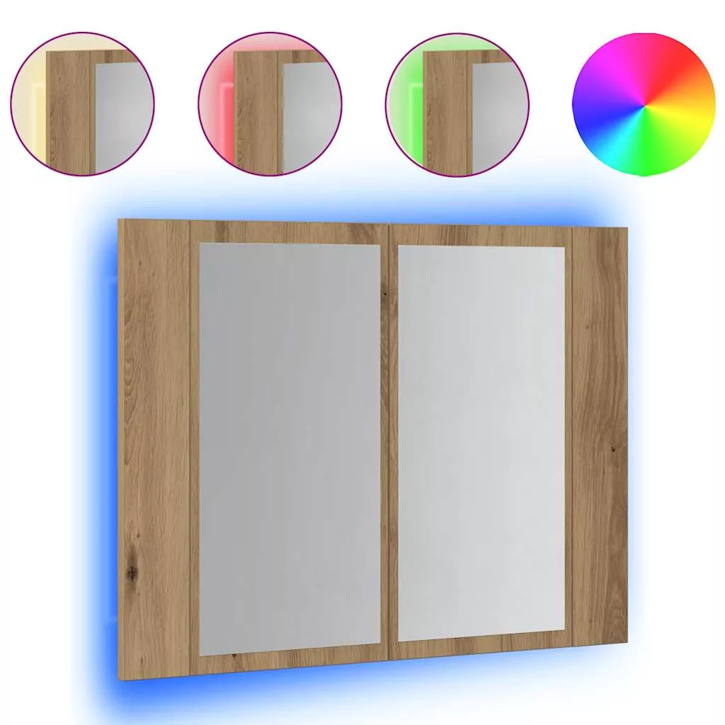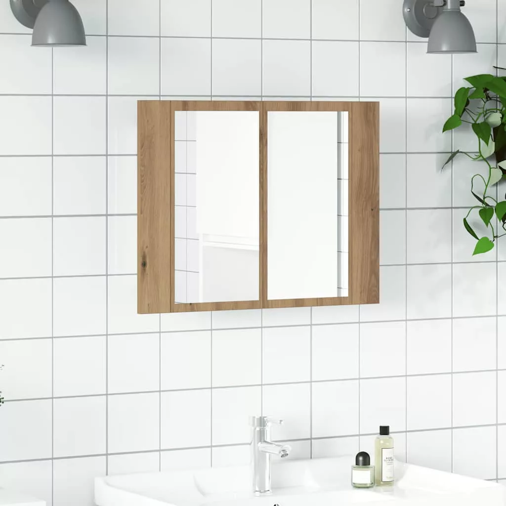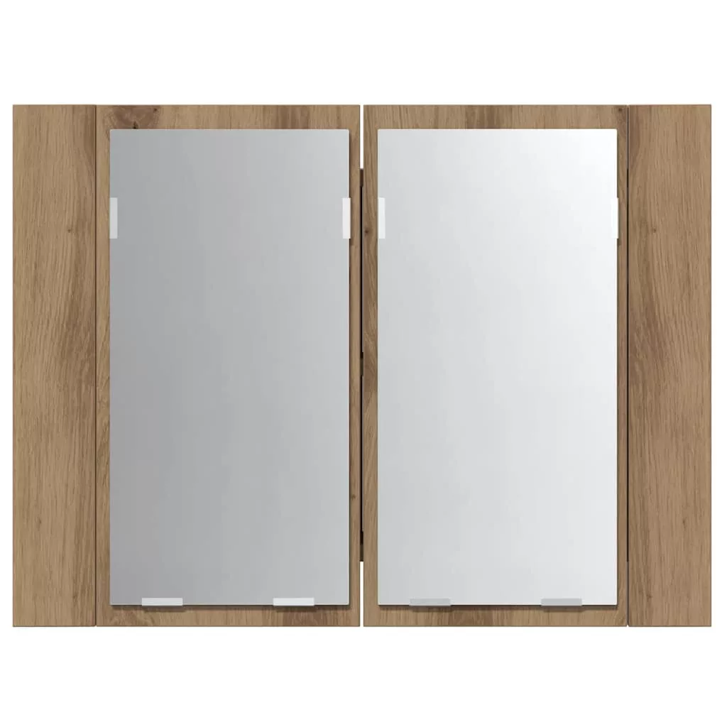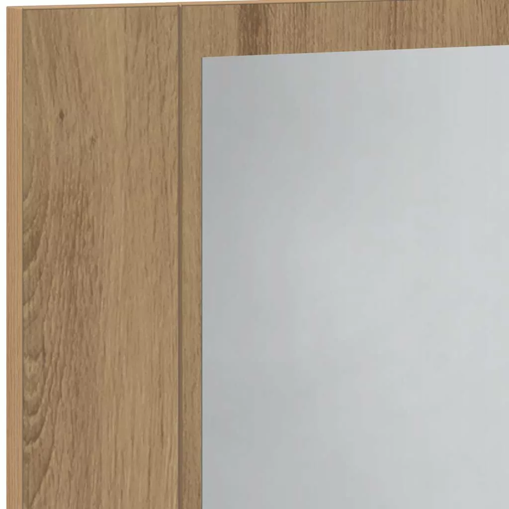 kézműves tölgyszínű szerelt fa tükörszekrény LED-del 60x12x45cm