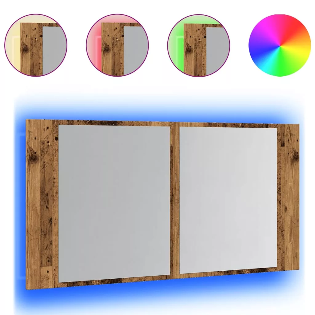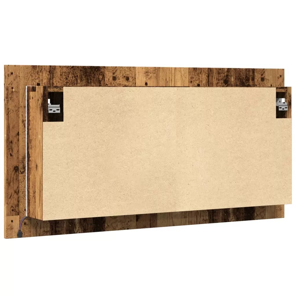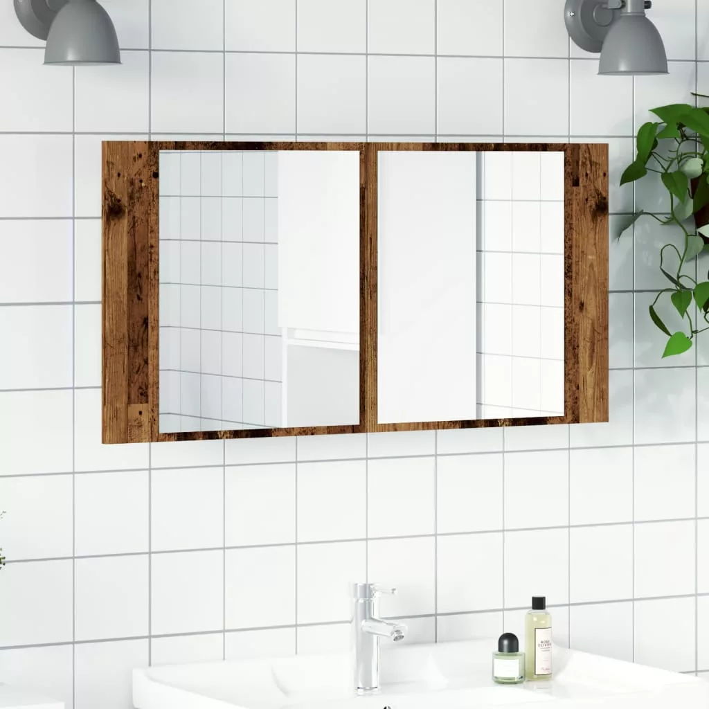 antik fa színű szerelt fa tükrösszekrény LED-del 90x12x45 cm