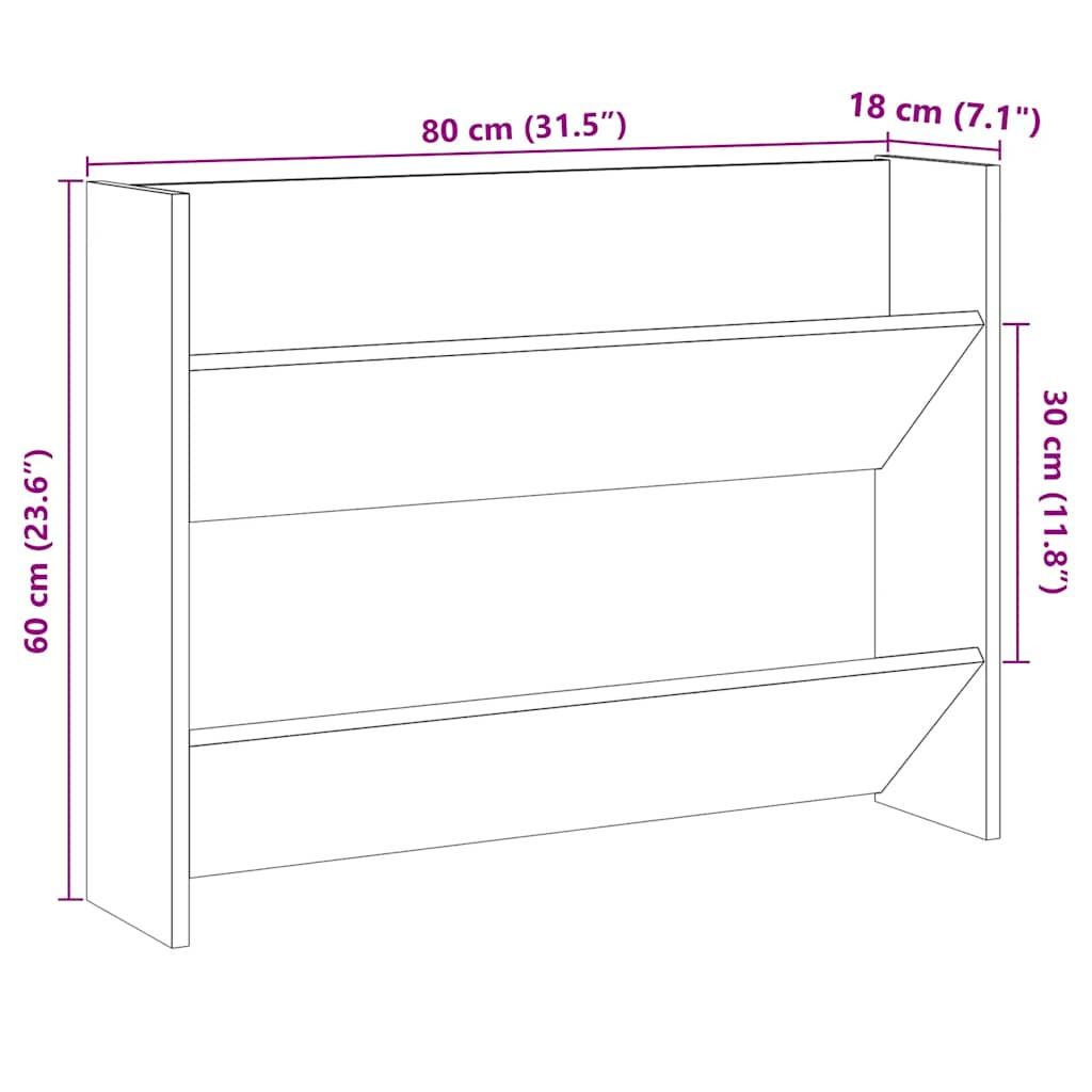 antik fa színű szerelt fa fali cipőszekrény 80 x 18 x 60 cm