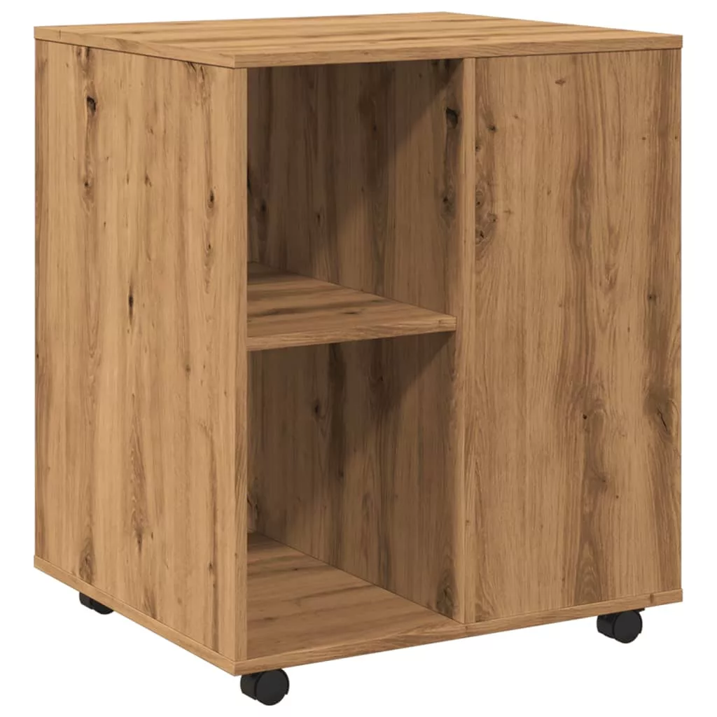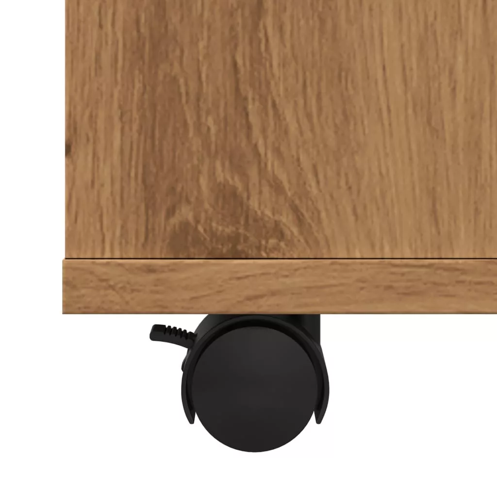 kézműves tölgy színű szerelt fa kerekes szekrény 60 x 53 x 72cm