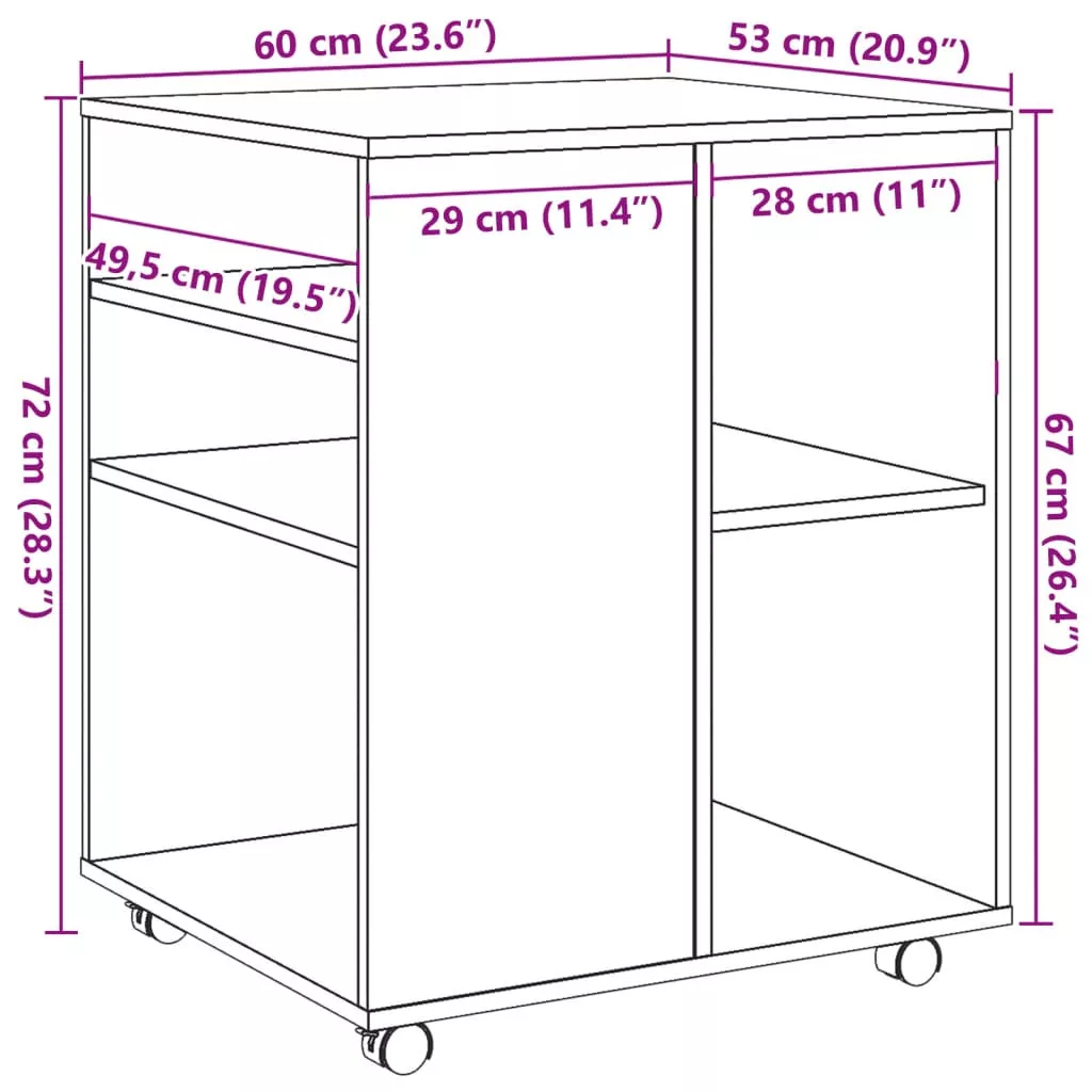 Ha zavarja a rendetlen asztal, és nem találja az iratait, akkor ez a kerekes szekrény tökéletes megoldás! Prémium minőségű anyag: A szerelt fa kivételes minőségű, sima felületű, szilárd, stabil, és ellenáll a nedvességnek. Ez a szerelt fából készült kisszekrény nedves ruhával könnyen tisztítható.További tárolóhely: A téglalap alakú felső lapon helytakarékosan tárolhatja a nyomtatót, a papírt és a kiegészítőket, ezzel helyet spórolva az asztal alatt vagy mellett.Kerekes kialakítás: A görgőknek köszönhetően, amelyek közül kettő zárható, a tárolószekrény különösen mobil és univerzális.