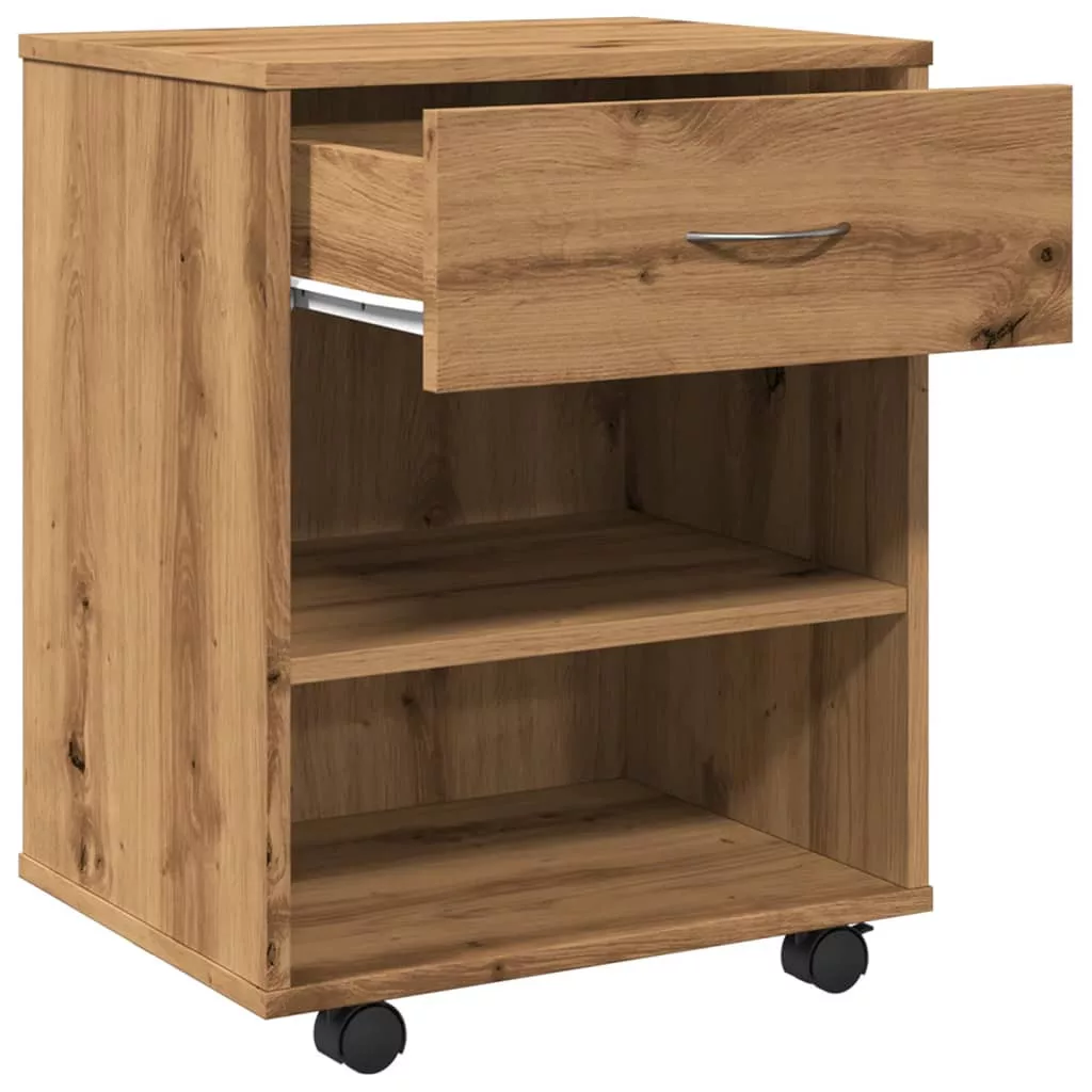 Ez a gördülő szekrény könnyen mozgatható, és bőséges helyet kínál, így kényelmes és megkönnyíti a munkavégzést. Stabil és tartós anyag: A szerelt fa tartós és stabil anyag sima felülettel, amely ellenáll a nedvességnek, a vetemedésnek és a hasadásnak, így megbízható választás különféle célokhoz.Bőséges tárolóhely: A tárolószekrény egy polccal és egy fiókkal bőséges tárolóhelyet kínál, hogy a legfontosabb dolgokat jól rendszerezve és elérhető közelségben tartsa.Könnyen mozgatható: Ez a mobil irattartó szekrény a mellékelt négy forgókeréknek köszönhetően könnyen áthelyezhető a kívánt helyre. A kerekek közül kettő lezárható, így a szekrény stabilan a helyén marad.Megjelenítő funkció: Az irattartó szekrény teteje stabil felületet biztosít, ahol elhelyezheti italait, könyveit vagy akár dísztárgyait.Széleskörű felhasználás: Ez az időtlen stílusú, guruló tárolószekrény saját igényei szerint használható a nappaliban, a konyhában, vagy a hálószobában.