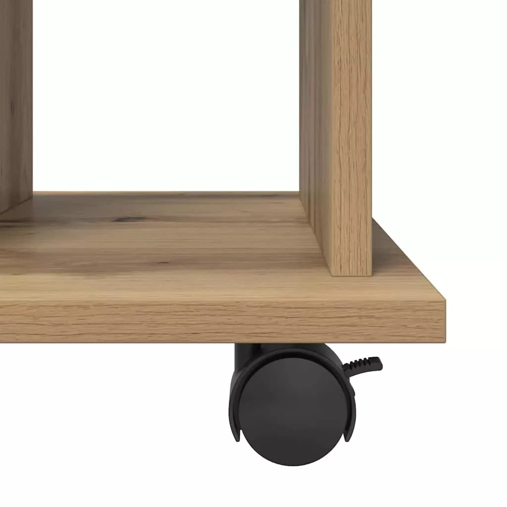 kézműves tölgy színű szerelt fa kerekes szekrény 60 x 45 x 60cm