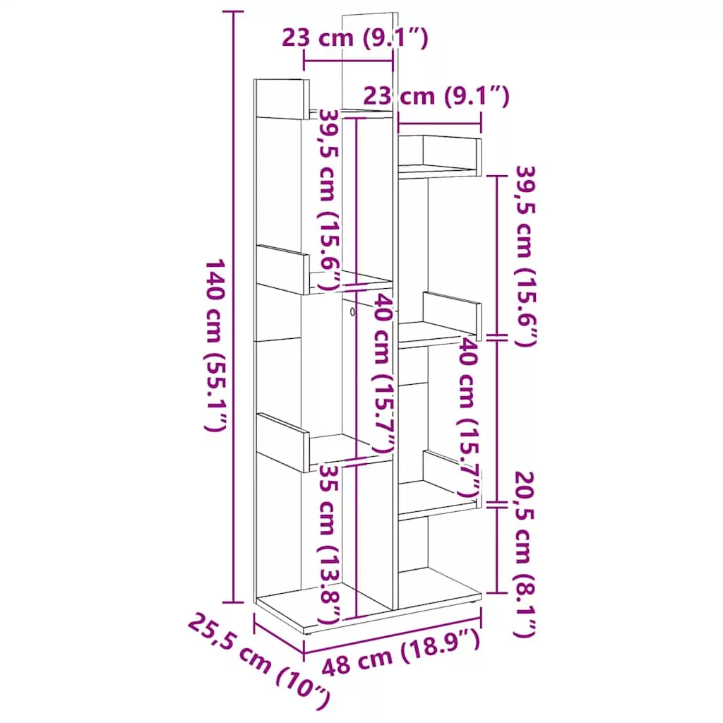 kézműves tölgy színű szerelt fa könyvszekrény 48 x 25,5 x 140cm