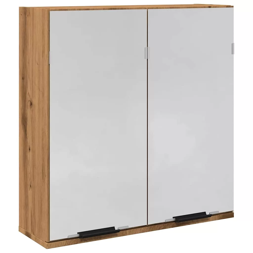 kézműves tölgy szerelt tükrös fürdőszobaszekrény 64x20x66,5cm