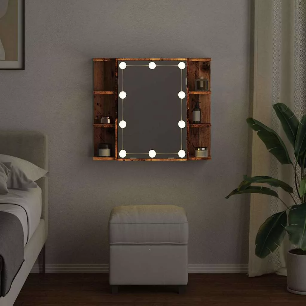 antik fa tükrös szekrény LED-ekkel 70 x 16,5 x 60 cm