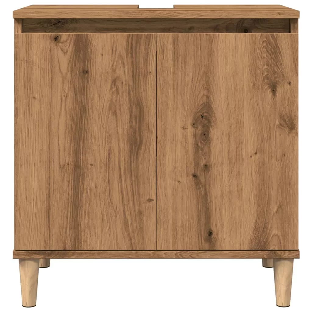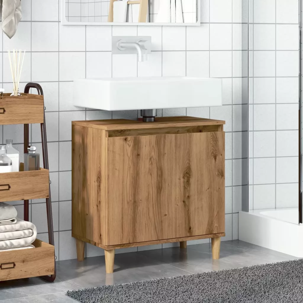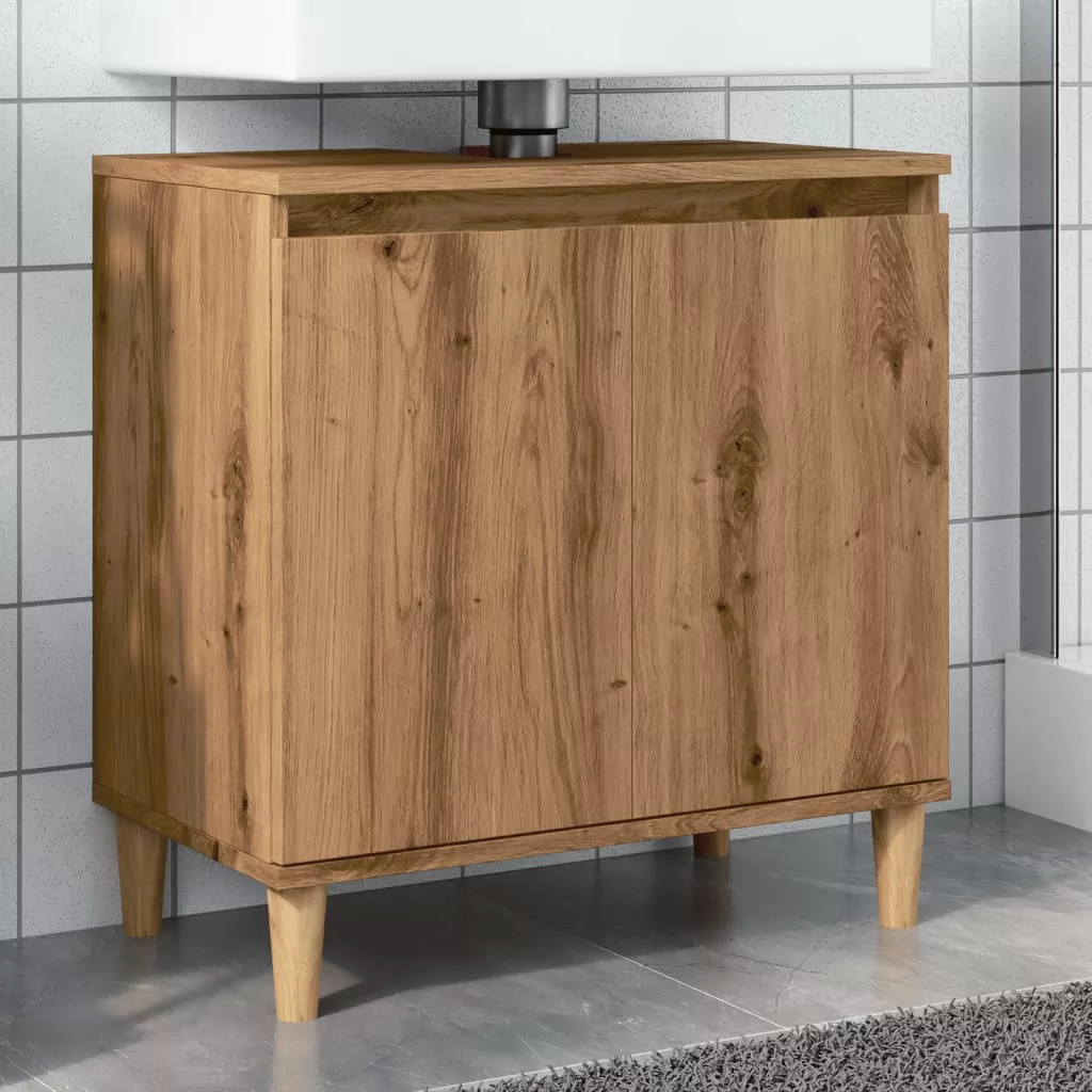 kézműves tölgy színű szerelt fa mosdószekrény 58x33x60 cm