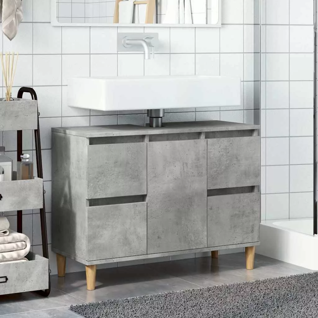 betonszürke szerelt fa mosdószekrény 80 x 33 x 60 cm