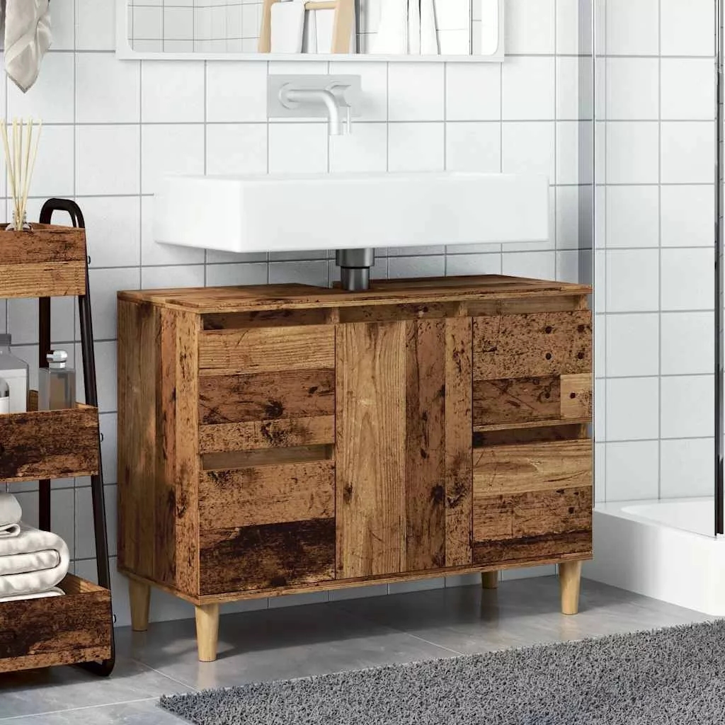 antik fa színű szerelt fa mosdószekrény 80 x 33 x 60 cm