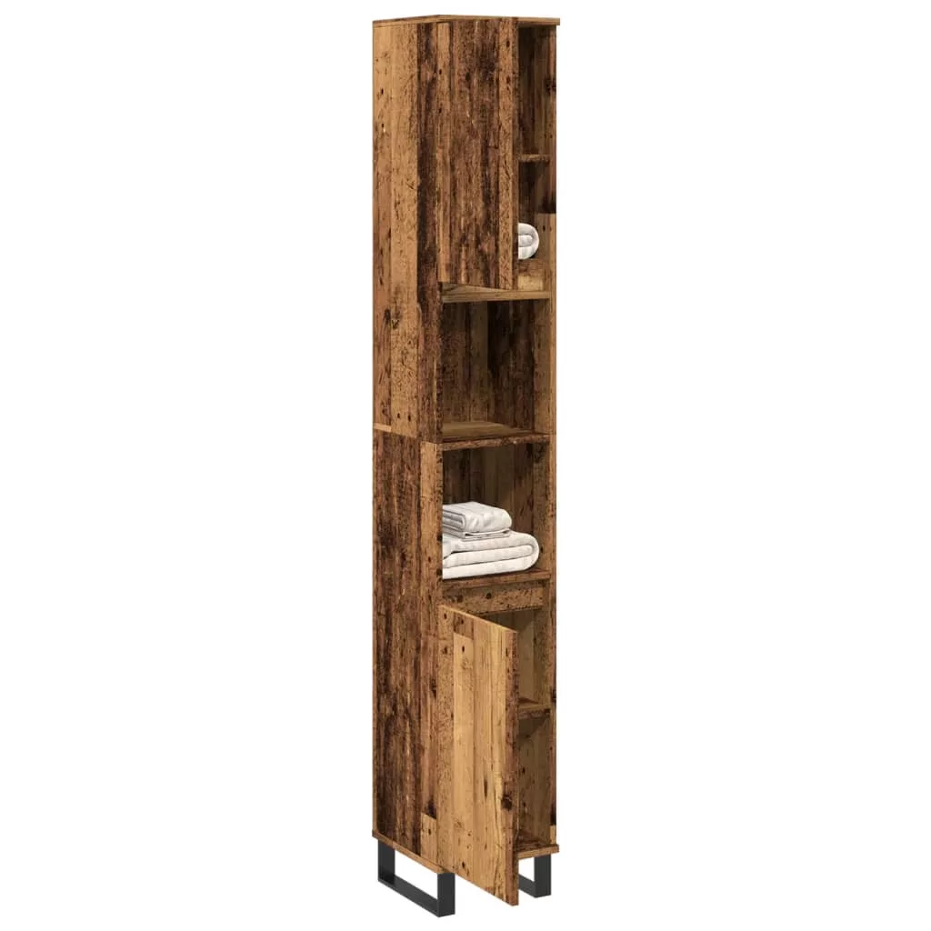 antik fa színű szerelt fa fürdőszobaszekrény 30 x 30 x 190 cm
