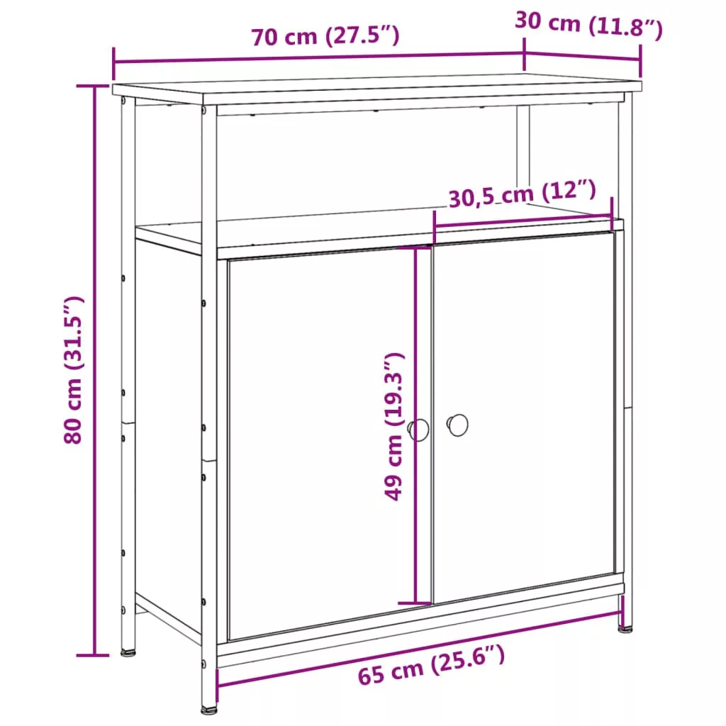 kézműves tölgy színű szerelt fa tálalószekrény 70 x 30 x 80 cm