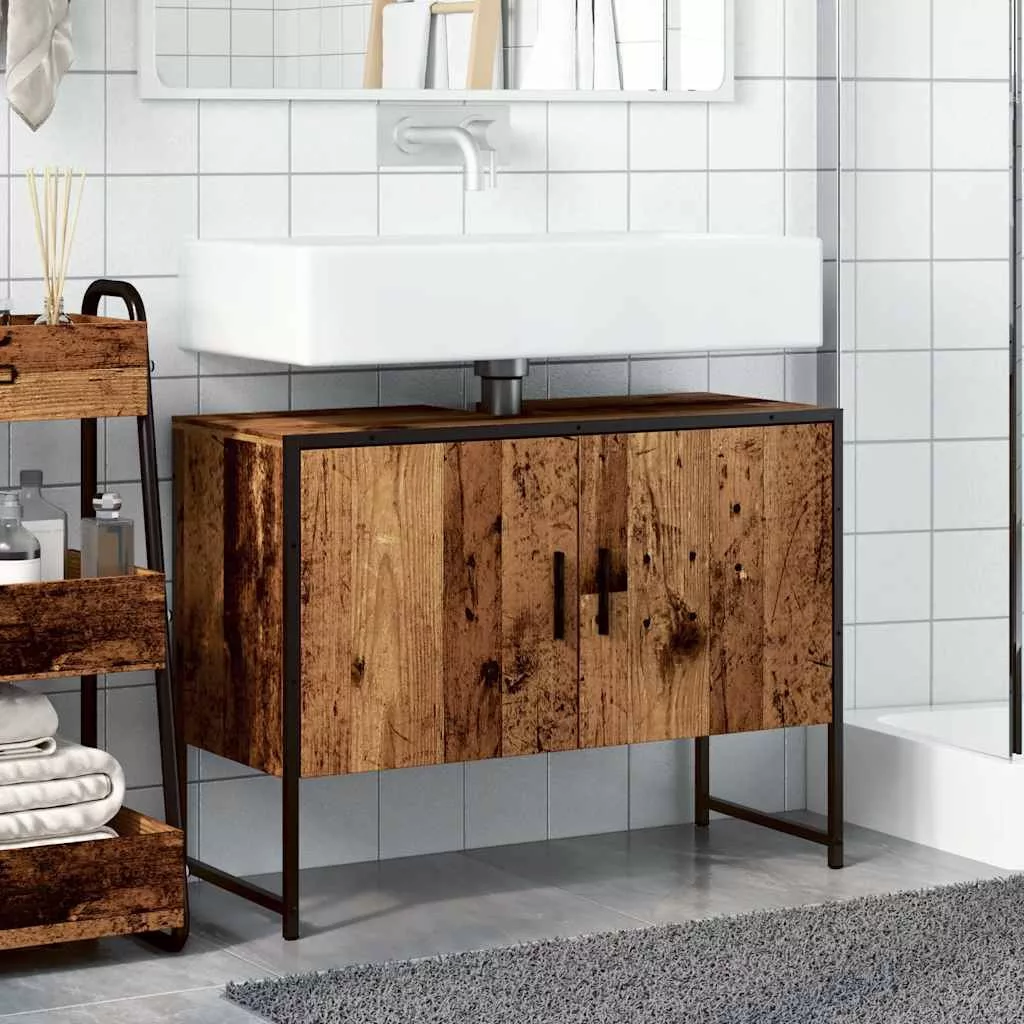 antik fa színű szerelt fa mosdószekrény 80 x 33 x 60 cm
