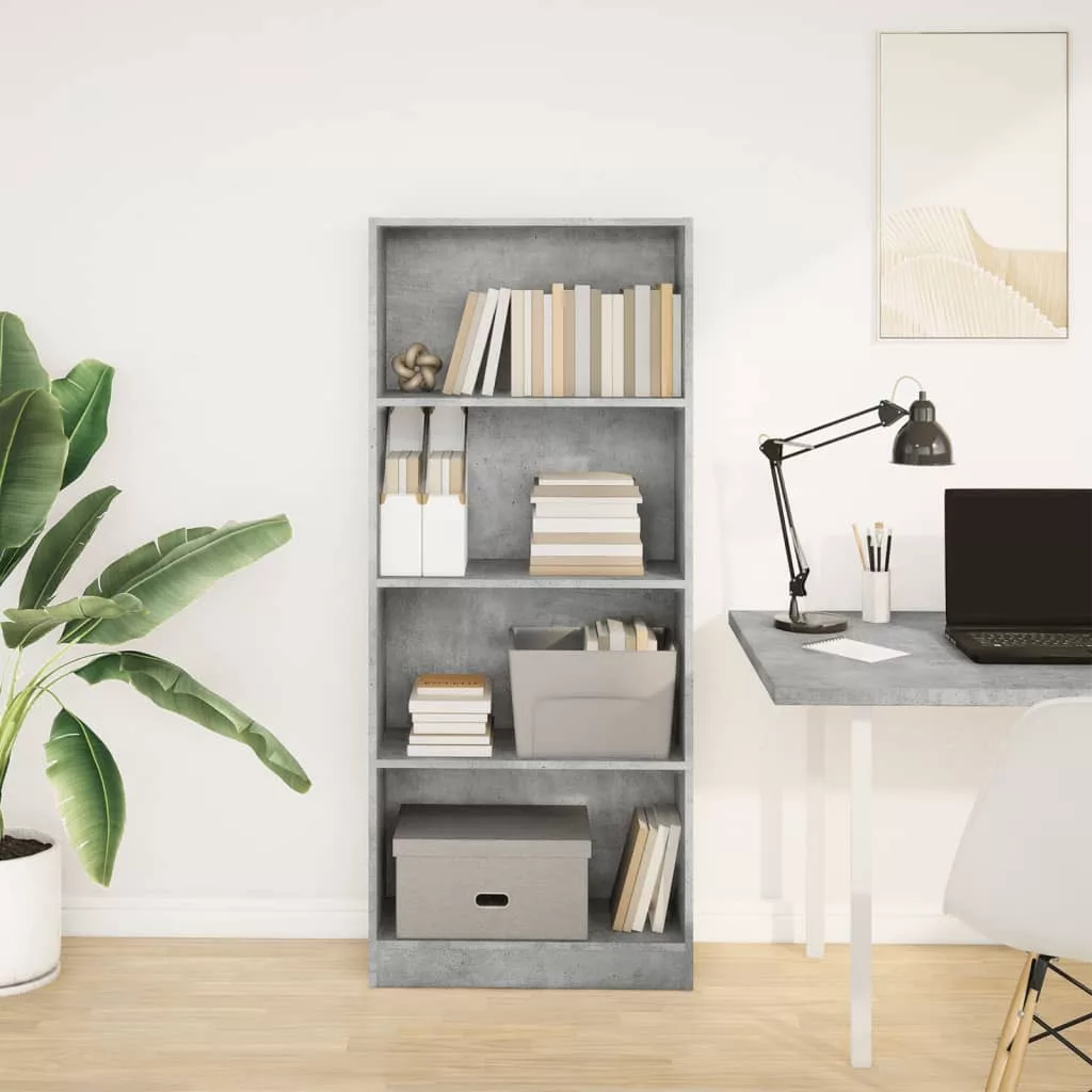 betonszürke szerelt fa könyvespolc 60 x 24 x 143 cm